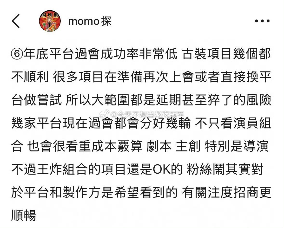 影视寒冬能按时开的大项目越来越少,下半年95🥜一番过会的仅有3个:丁禹兮:《花开锦绣》女频古偶,搭sdfj大公主张凌赫:《归鸾》女频古偶,搭林允陈哲远:《不让江山》男频权谋,女主未定