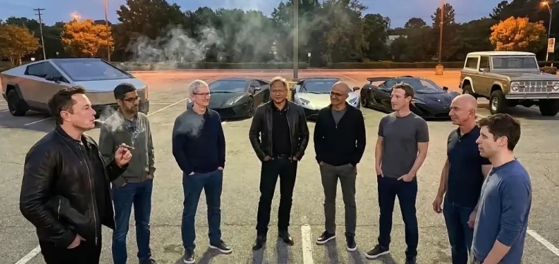最近美国那边顶级科技公司的8个老板,晚上聚在一起,商议未来发展,其中7个人站没站相,双手插兜,马斯克还叼着雪茄,吞云吐雾的。