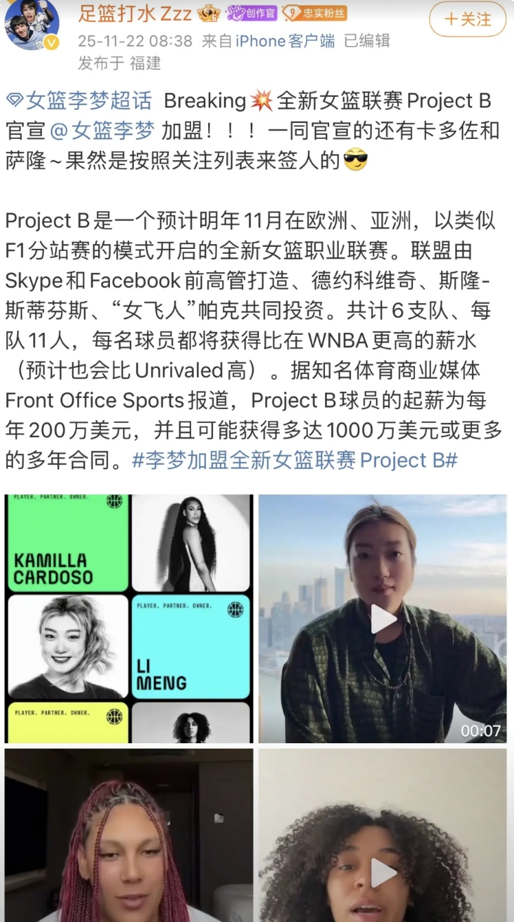 这是一个全新的职业女篮联赛,时间是2026年11月份开启