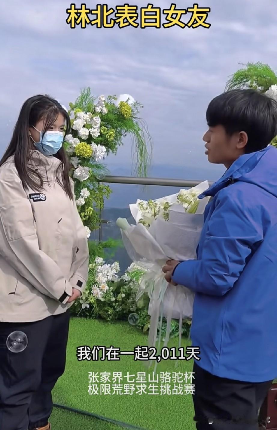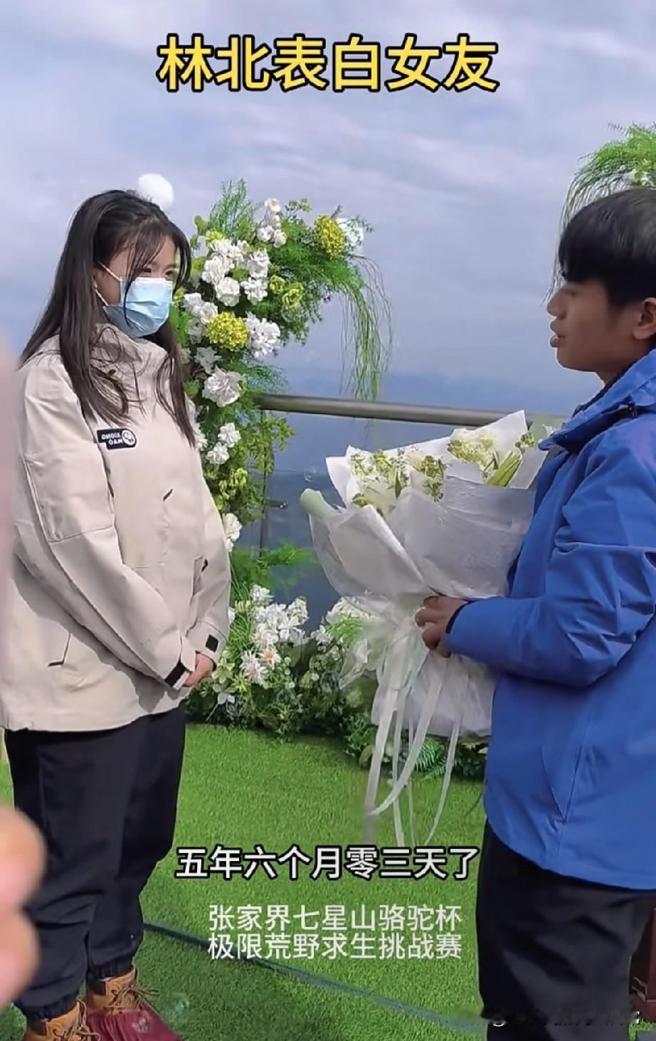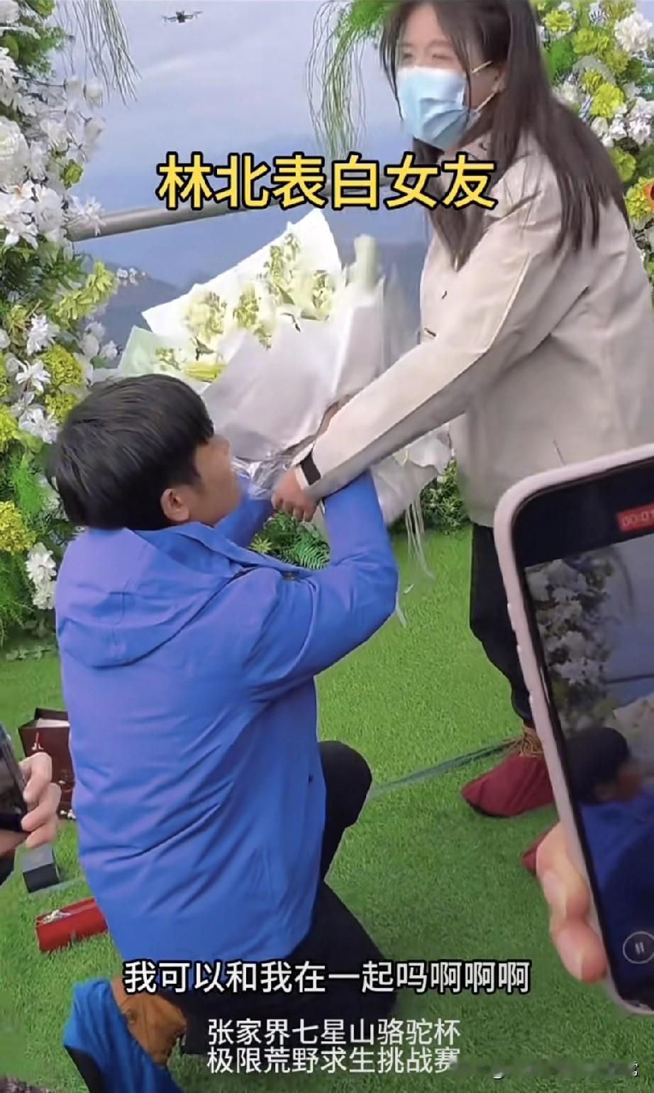 林北张家界山顶求婚成功! 刚刷到张家界七星山这幕,直接戳中我泪点——穿蓝外套的男生攥着花束,对着女生报出“2011天、五年六个月零三天”的恋爱时长,山顶风裹着他的声音发颤:“想和你过一辈子生活”。 之前那粉色煤气罐求婚已经够野,这次更杀——男生单膝跪时手都在抖,女生口罩压得低,可肩膀一抽一抽的,接花时指尖都是红的。节目组把荒野赛场地改成花墙,连路人都举着手机喊“答应他”! 不过有人酸:“搞这么大阵仗,是演给镜头看的吧?”可谁恋爱里没点想被全世界见证的时刻?你觉得这求婚是真心的吗,还是搞流量