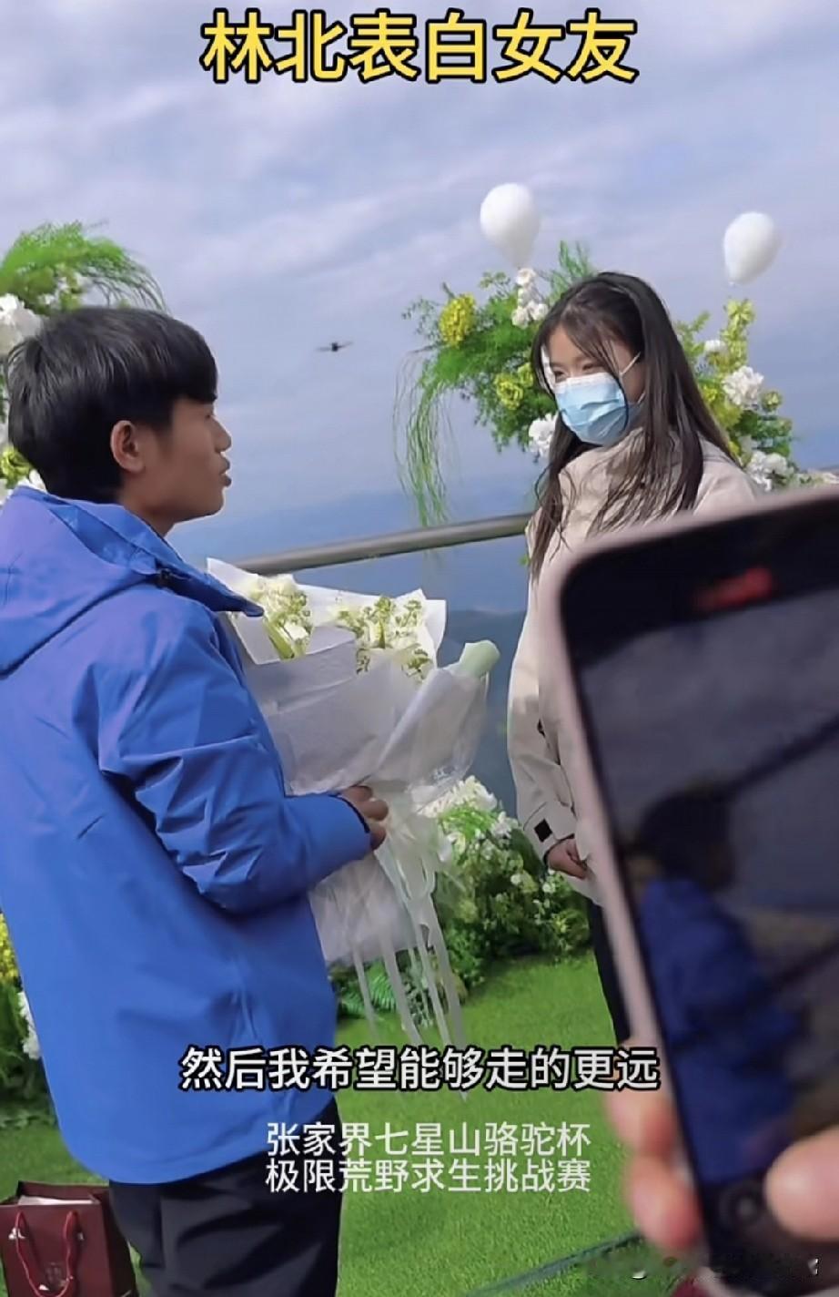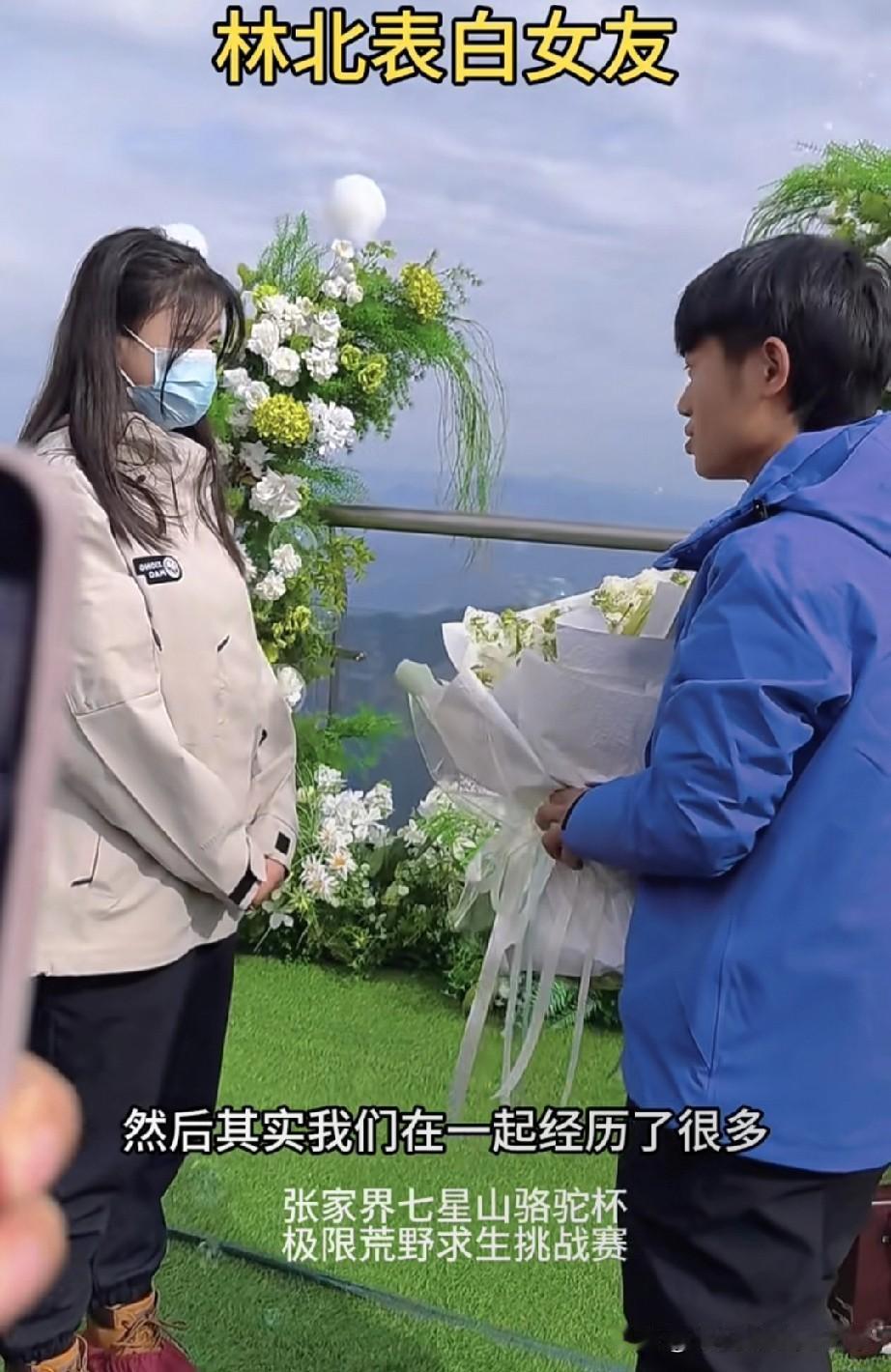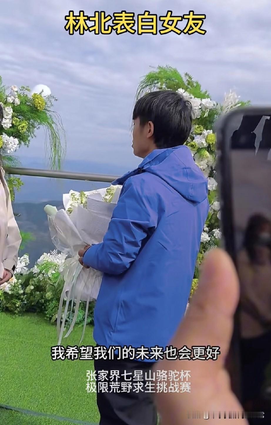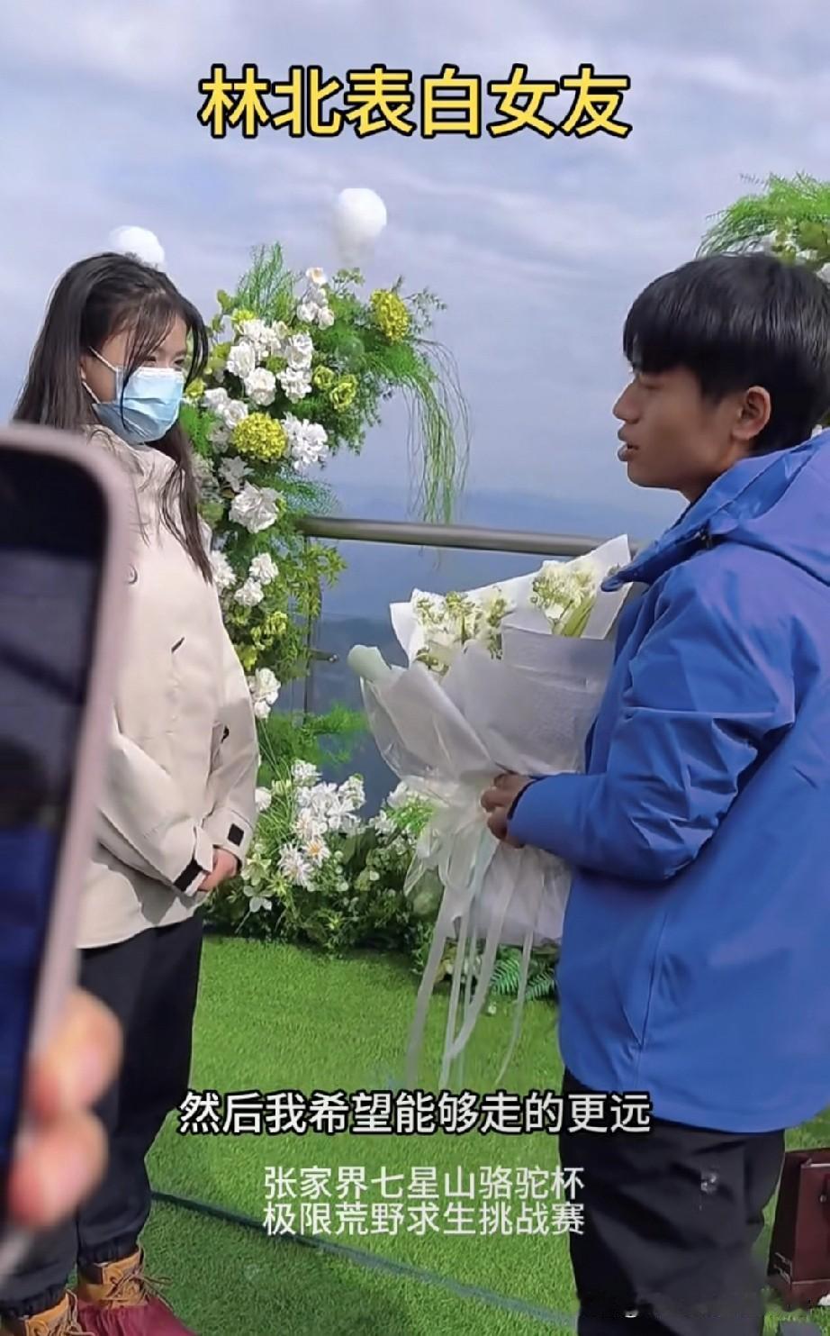 林北张家界山顶求婚成功! 刚刷到张家界七星山这幕,直接戳中我泪点——穿蓝外套的男生攥着花束,对着女生报出“2011天、五年六个月零三天”的恋爱时长,山顶风裹着他的声音发颤:“想和你过一辈子生活”。 之前那粉色煤气罐求婚已经够野,这次更杀——男生单膝跪时手都在抖,女生口罩压得低,可肩膀一抽一抽的,接花时指尖都是红的。节目组把荒野赛场地改成花墙,连路人都举着手机喊“答应他”! 不过有人酸:“搞这么大阵仗,是演给镜头看的吧?”可谁恋爱里没点想被全世界见证的时刻?你觉得这求婚是真心的吗,还是搞流量