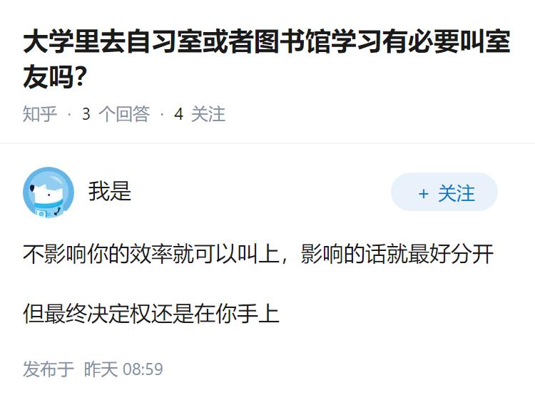 大学里去自习室或者图书馆学习有必要叫室友吗?
