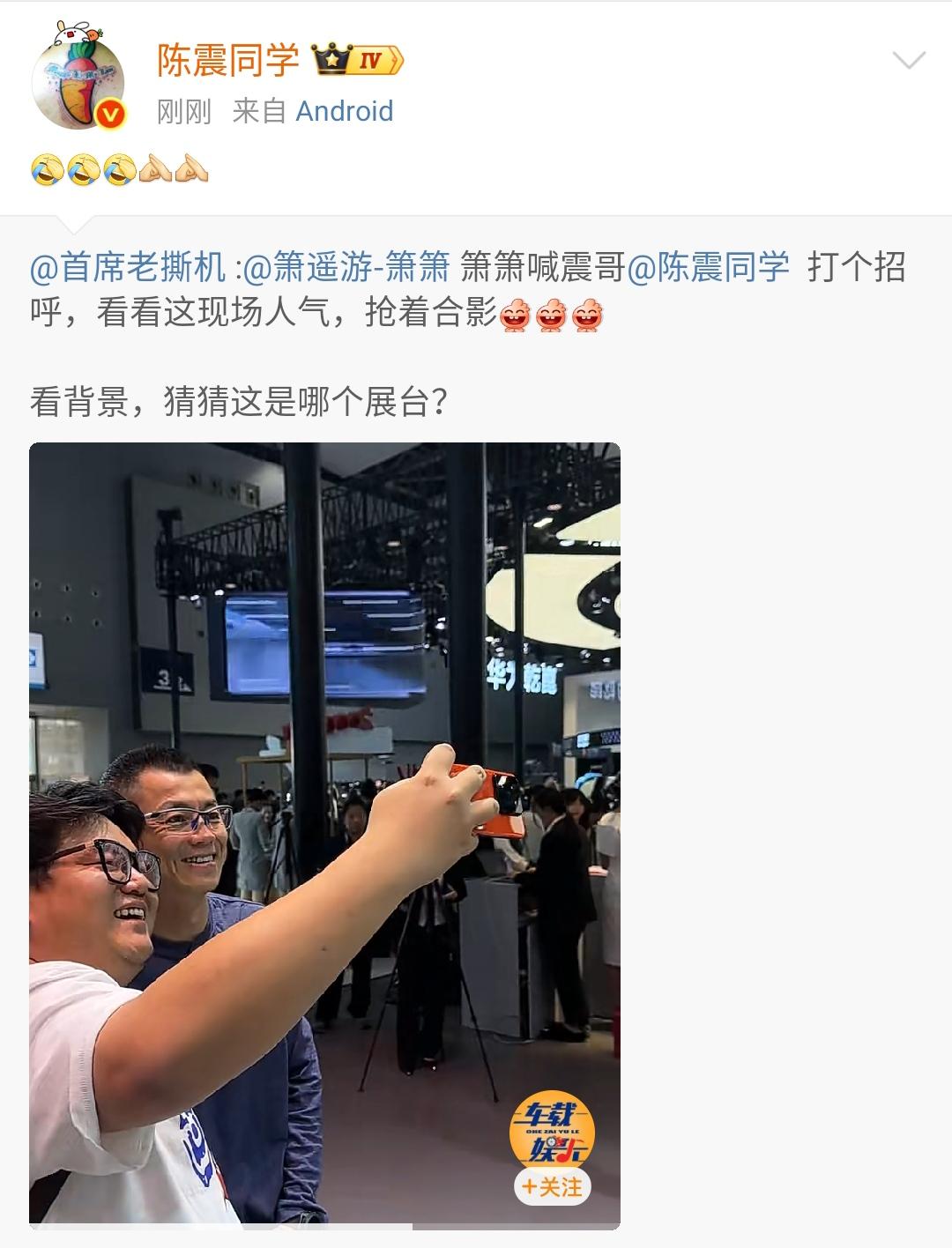 陈震:[捂脸][捂脸][捂脸][作揖][作揖] 陈震别看天天在网上被网友怼,真到了现实生活中,找他合影的人还真的是非常的多。 包括观众和同行都愿意和这个汽车媒体顶尖的流量王者合影,这一天下来如果不跑得快一点,那合影和打招呼得重复多少遍呀! 各位是怎么看的?欢迎评论区留言。