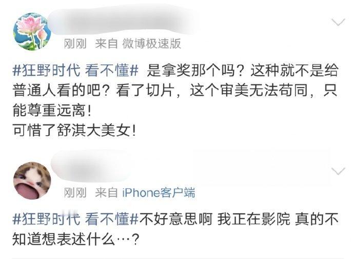 狂野时代作为文艺片观众如此评价也在意料之中吧,我一直觉得文艺片不花时间精力很难完全理解其中深意,但是也没必要为此pua观众让观众找自己问题吧不要剥夺普通人评价艺术电影的资格吧、、