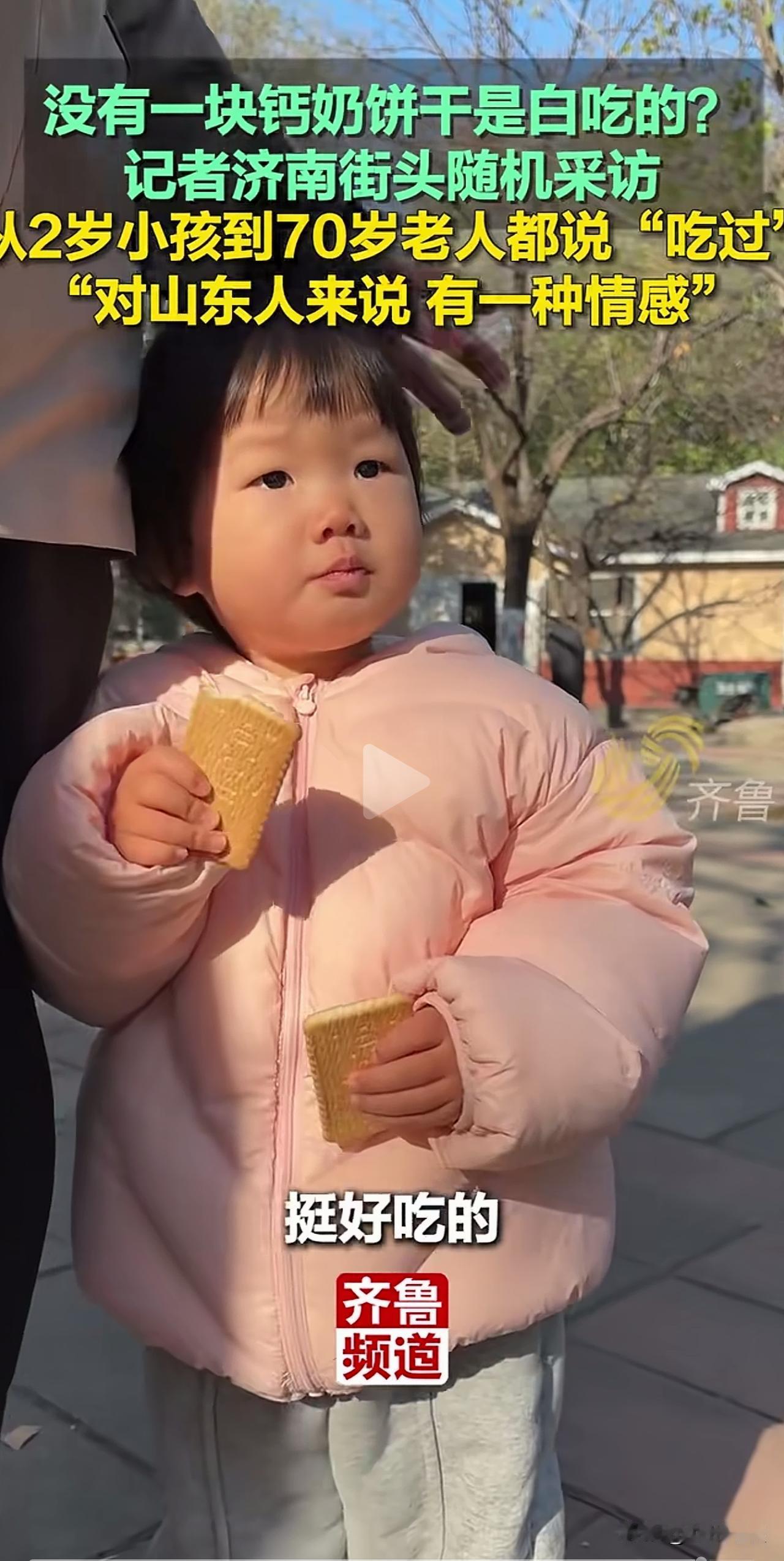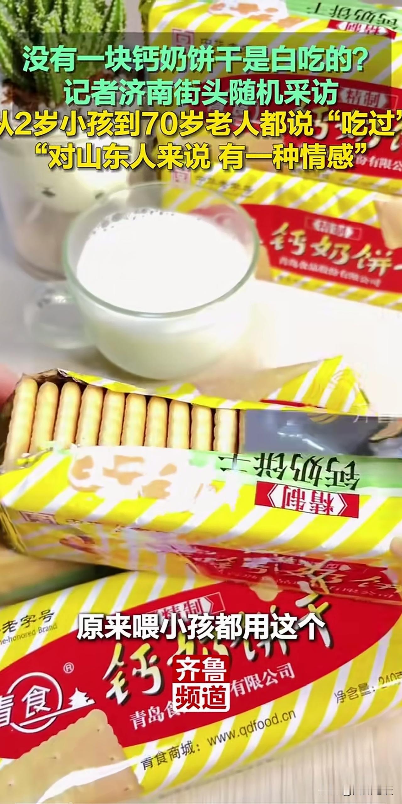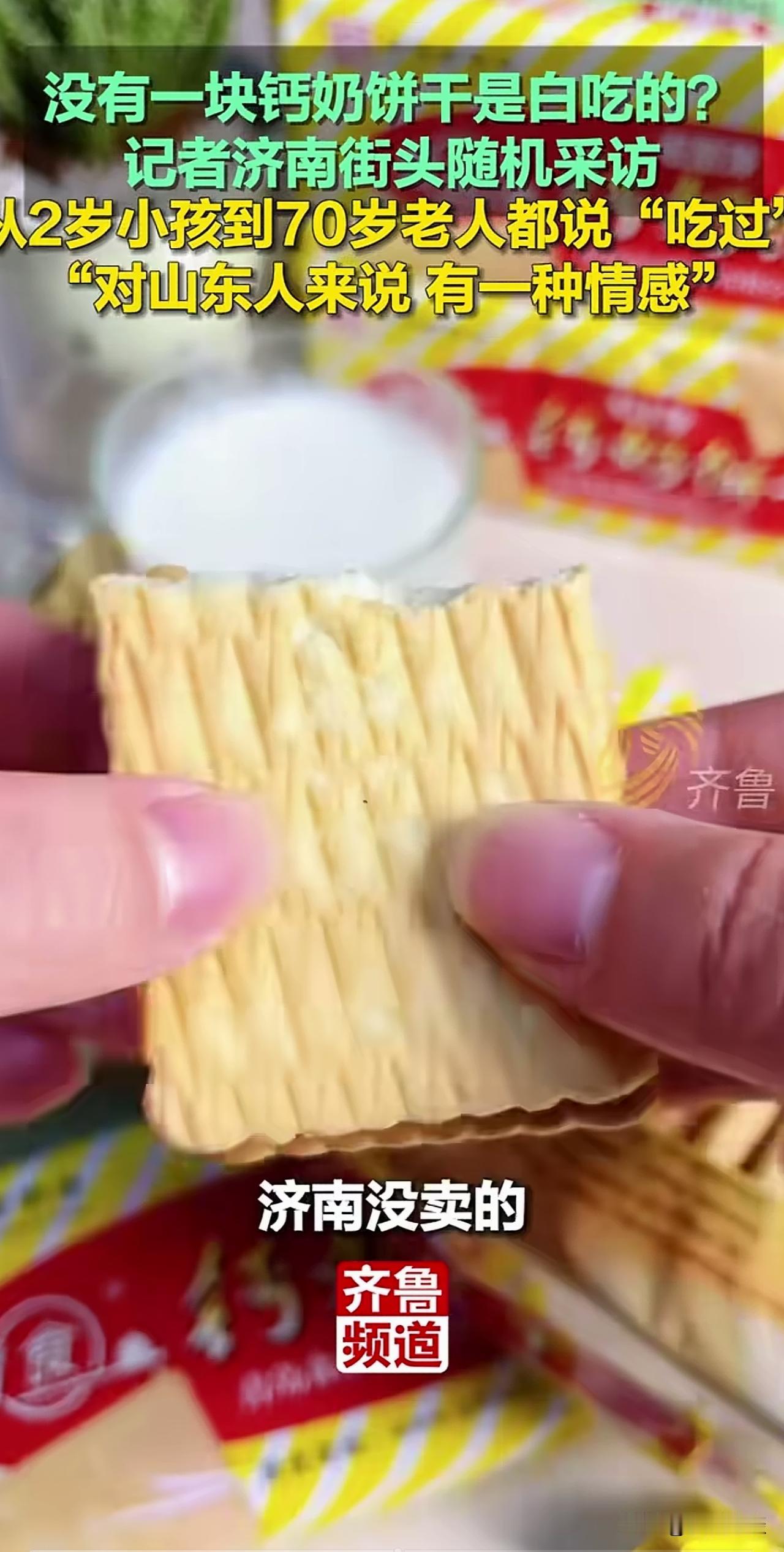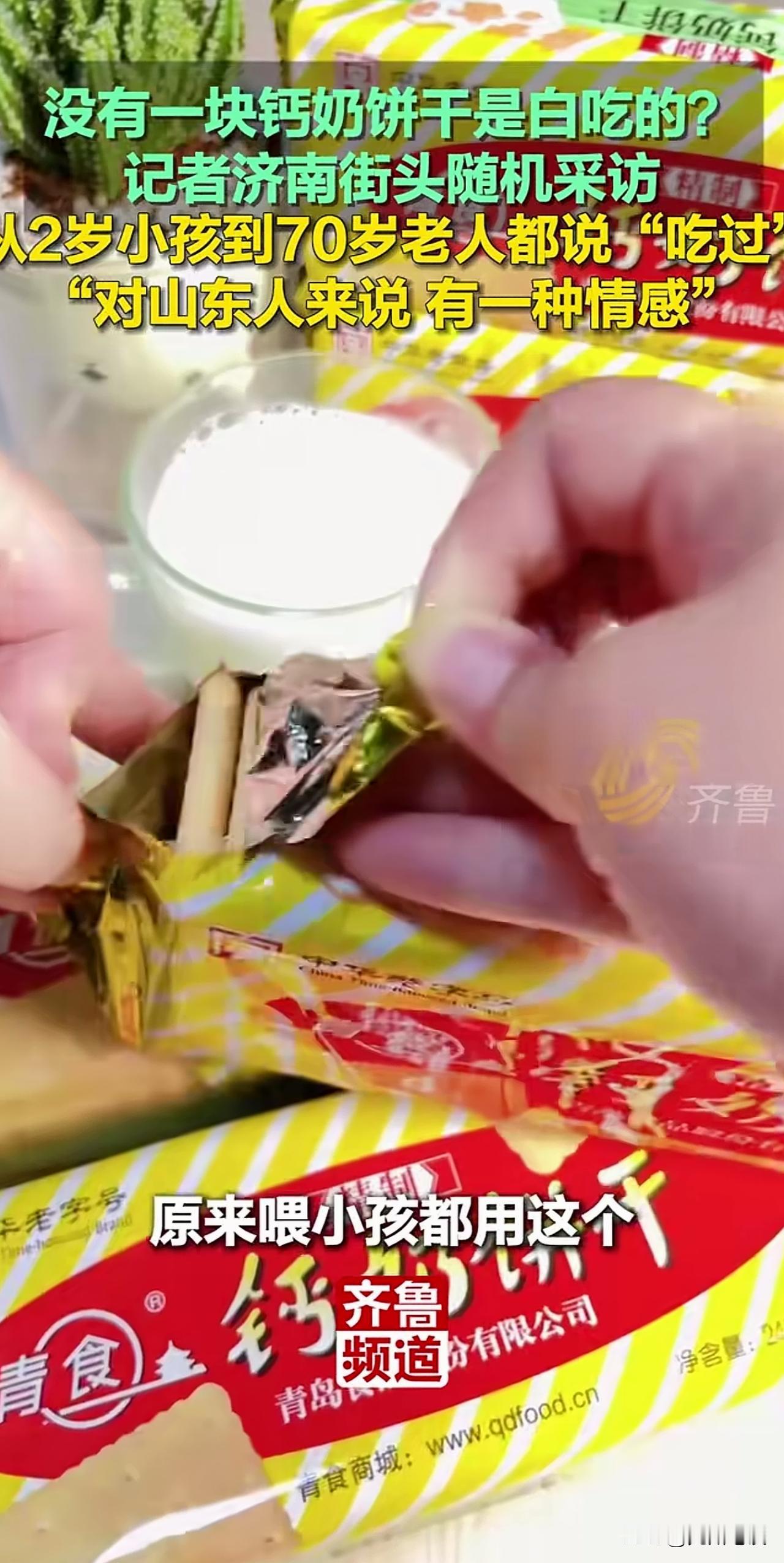 经典永流传,刻在山东人基因里的经典特色! 不一定从2岁到70岁的山东人都吃过,至少九十年代前出生的山东人基本上都吃过的一种地方特色食品,不是煎饼,也不是鲅鱼馅饺子,也不是锅饼烤盘。 而是青岛钙奶饼干!从几毛钱一包到现在的几块钱一包,从油纸包装到现在的塑料纸包装。口味基本上没有大的变化! 原来几十年前省城济南也不容易买到啊!还要去青岛出差时捎带几包。 你吃过吗? 没有牛奶蘸着吃,也可以蘸一下开水,软软的,入口即化。 现在时代发展,物质极大丰富了。 饼干也种类繁多,青岛钙奶饼干就没有那么受欢迎了。