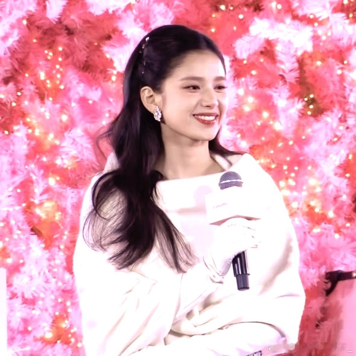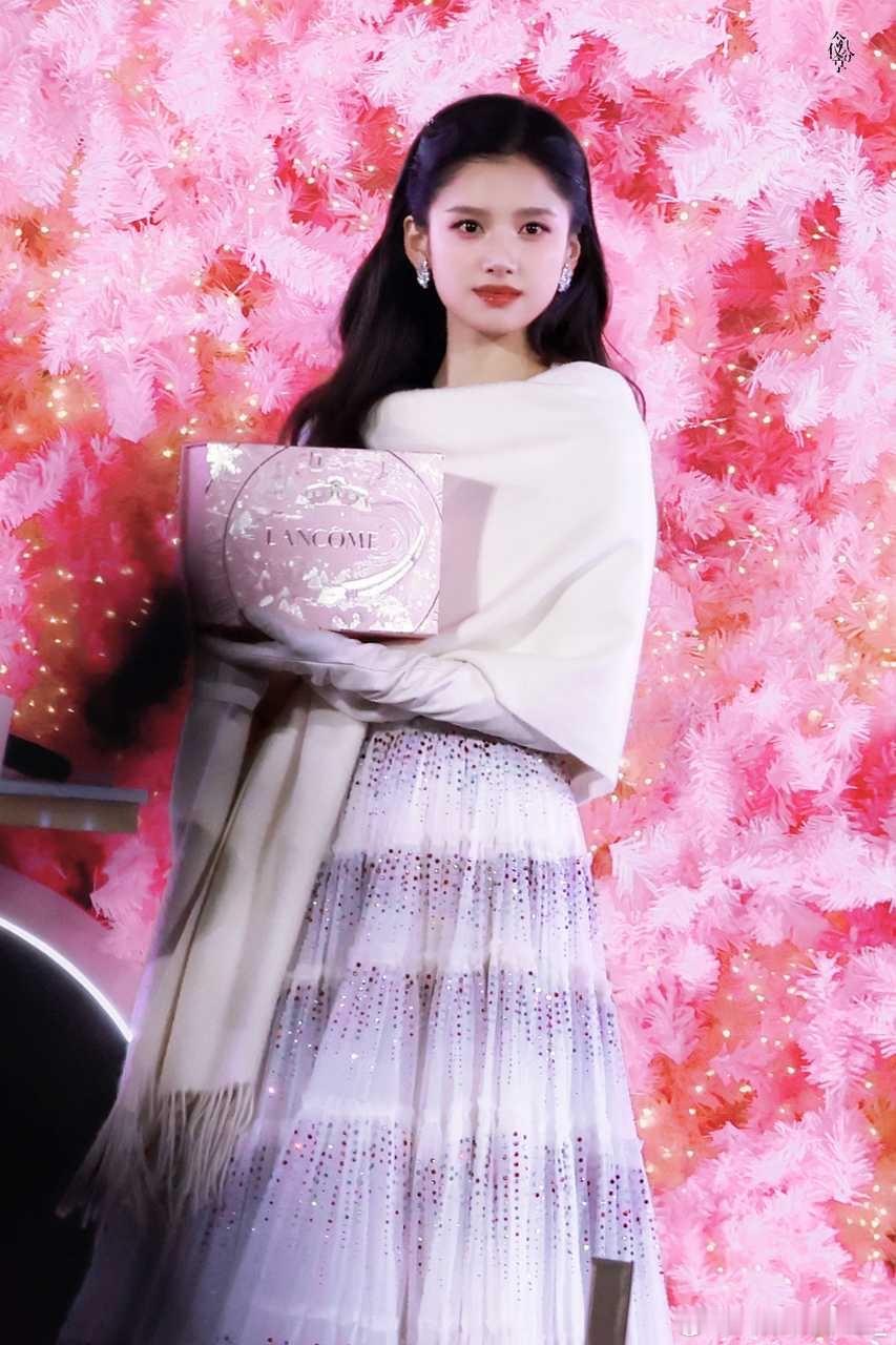 刘亦菲把死亡玫粉穿出了定制款的感觉,这种颜色普通人穿上分分钟黑三度,她居然能穿出
