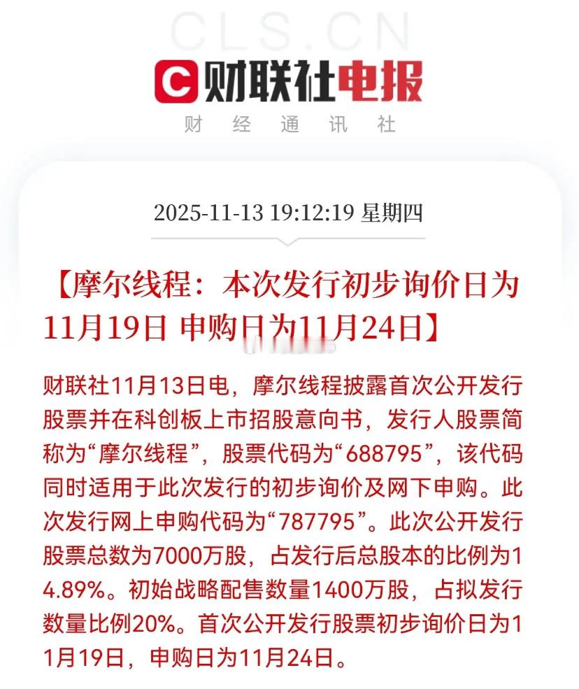 摩尔线程上市,和而泰有多少投资收益?周一摩尔线程科创板IPO就要申购了,摩尔线程这次IPO募集资金80亿,发行价114.28元,作为直接持有摩尔线程股份最多的上市公司和而泰,本次投资能有多少收益呢?和而泰直接持有摩尔线程股份1.0262%,按照本次发行募集的资金计算是8000多万,但和而泰的估计远不止80亿,目前折中的说法是3000亿,因为寒武纪目前市值已经超过了5000亿,所以摩尔线程的3000亿并不夸张,和而泰持股的价值就超过30亿了,而当初和而泰投资本金据说是3000万,相当于翻了百倍。所以摩尔线程上市,散户们都觉得打新门槛高,中签难,而和而泰已经躺赢了!