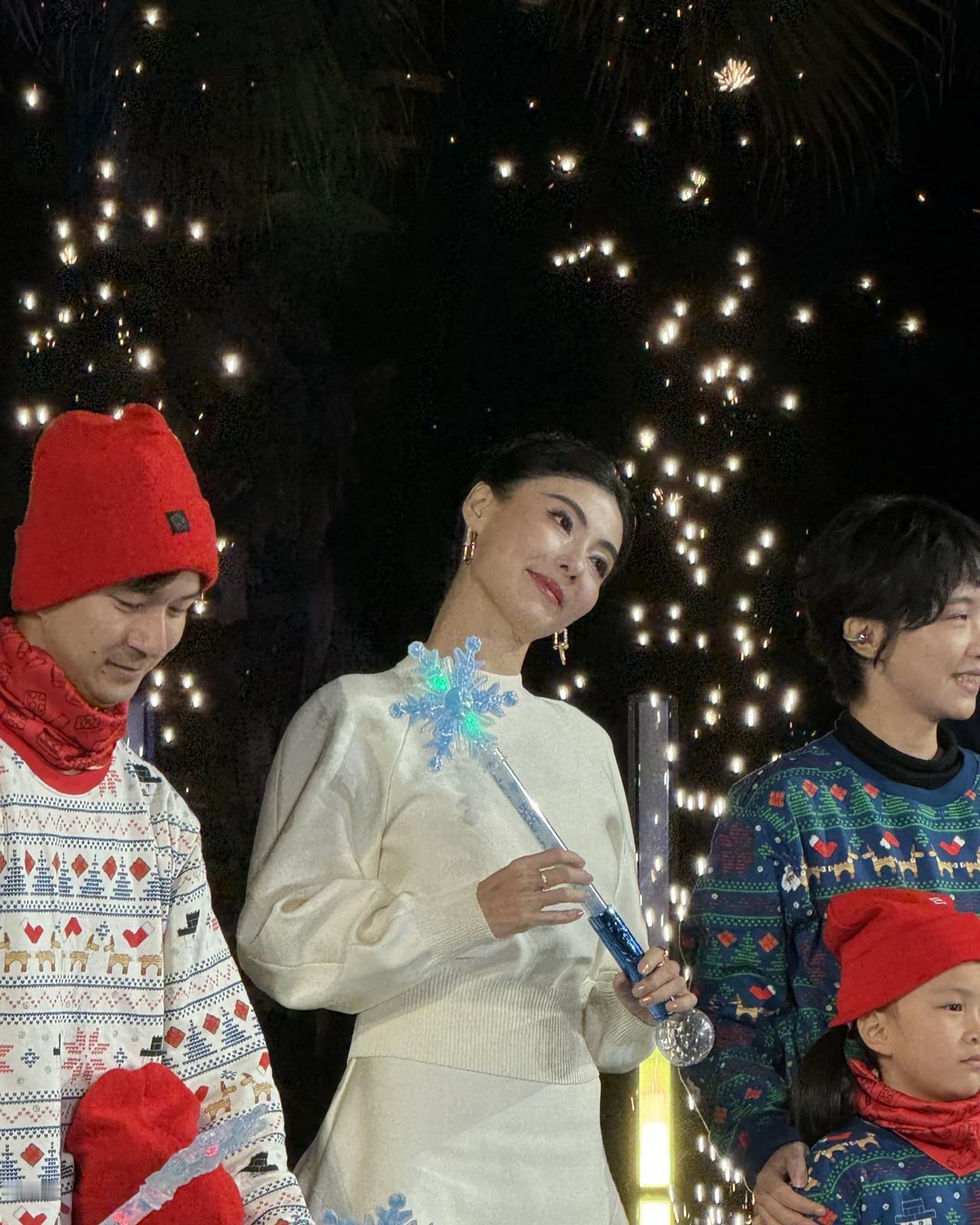用美貌会发光这个词来形容张柏芝再贴切不过了。 她今天作为冬日星愿大使 ,现身上海乐高乐园参加了点亮圣诞仪式,烟花下的她好美,精巧紧致的脸型白皙的皮肤配上立体的眉眼真的好看极了。 女明星漂亮上镜已经是见怪不怪的事,单看她自己并不觉得有多惊艳,但把她放在人群里就知道她颜值有多高了,她的美貌仿佛跟周围的人不在一个图层,确实连后脑勺都是美的。 45岁还清丽灵动苗条轻盈如少女状态真的太好了,照片受到晚上光线的影响无法百分之百拍出她的美,真人更有气质。