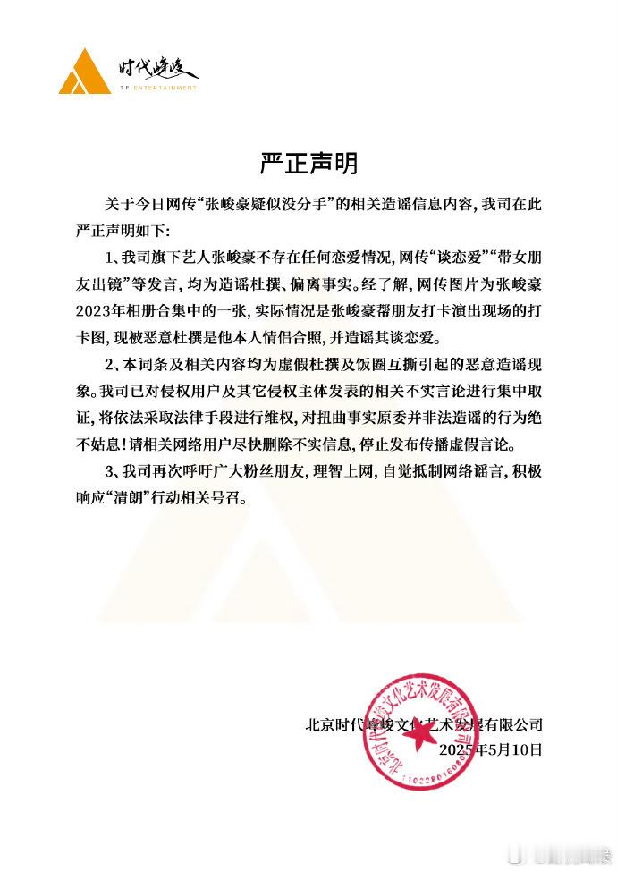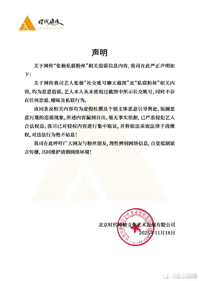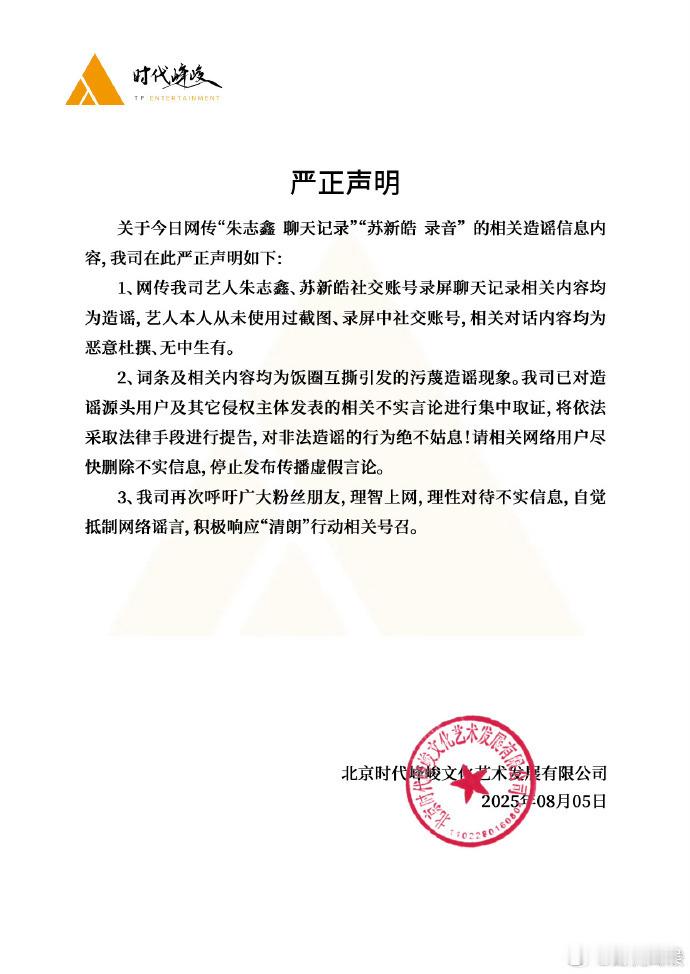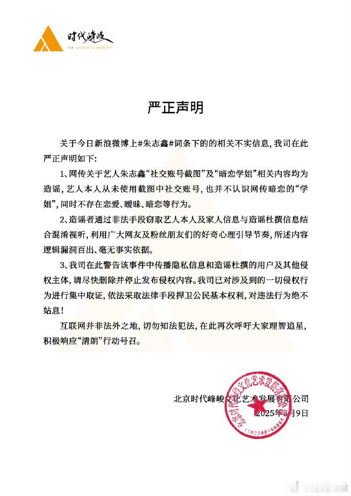 涉及朱志鑫私联的不实传闻,促使时代峰峻一周内发布3份辟谣声明。公司通过官方渠