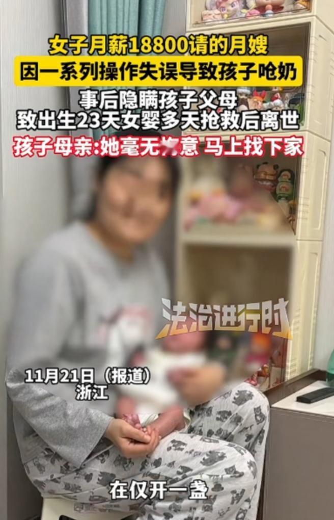 女子花高薪聘请月嫂照顾婴儿,不料月嫂操作失误,导致婴儿呛奶,月嫂还隐瞒不报,最终婴儿抢救无效,这件事,网友们吵得不可开交,主要有两个方面:一方面是这件事责任到底该怪谁?有人觉得是父母的错,为什么要请月嫂,自己的孩子不亲力亲为,出了事怪谁;也有人说月嫂是怎么当的,一点也不专业,给孩子喂奶这种小事都能出错,怎么拿的证?居然还敢找下一家;另一方面是觉得宝妈生完孩子后,应不应该请月嫂,有人支持有人反对。 其实吧,我觉得家庭条件富裕的,又不想带孩子的,请一个月嫂,也能让宝妈在做月子的时候好好休息,不过挑月嫂,得挑有经验一些的,起码得五六年经验起步吧,才能抱宝宝放心交给月嫂,让自己安心一点。当然,这件事,不掰扯其他,完完全全就是这位月嫂的错,太不是人,自己操作不当,居然还隐瞒情况,只能说这位宝妈倒霉,找了一个不靠谱的月嫂。你们怎么看呢?