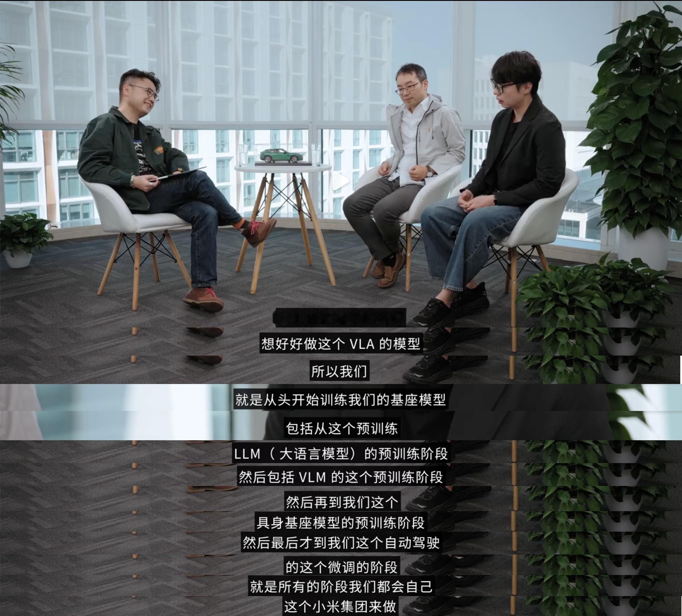 最新的采访视频都看了吧小米辅助驾驶三大巨头:● 陈光(博士)。国内最早做L4自动驾驶;辅助驾驶行业先驱● 陈龙(博士)。入选《麻省科评》亚太科技创新35岁/35人● 王乃岩(博士)。入选2014 Google PhD Fellow,目前负责小米L3雷军:像这样的猛人,我还有108个,团队人数1800人。今年小米还要在AI领域砸70亿,我相信有钱有人有魄力,这样的大前提之下,小米的VLA和未来的L3都绝对值得期待