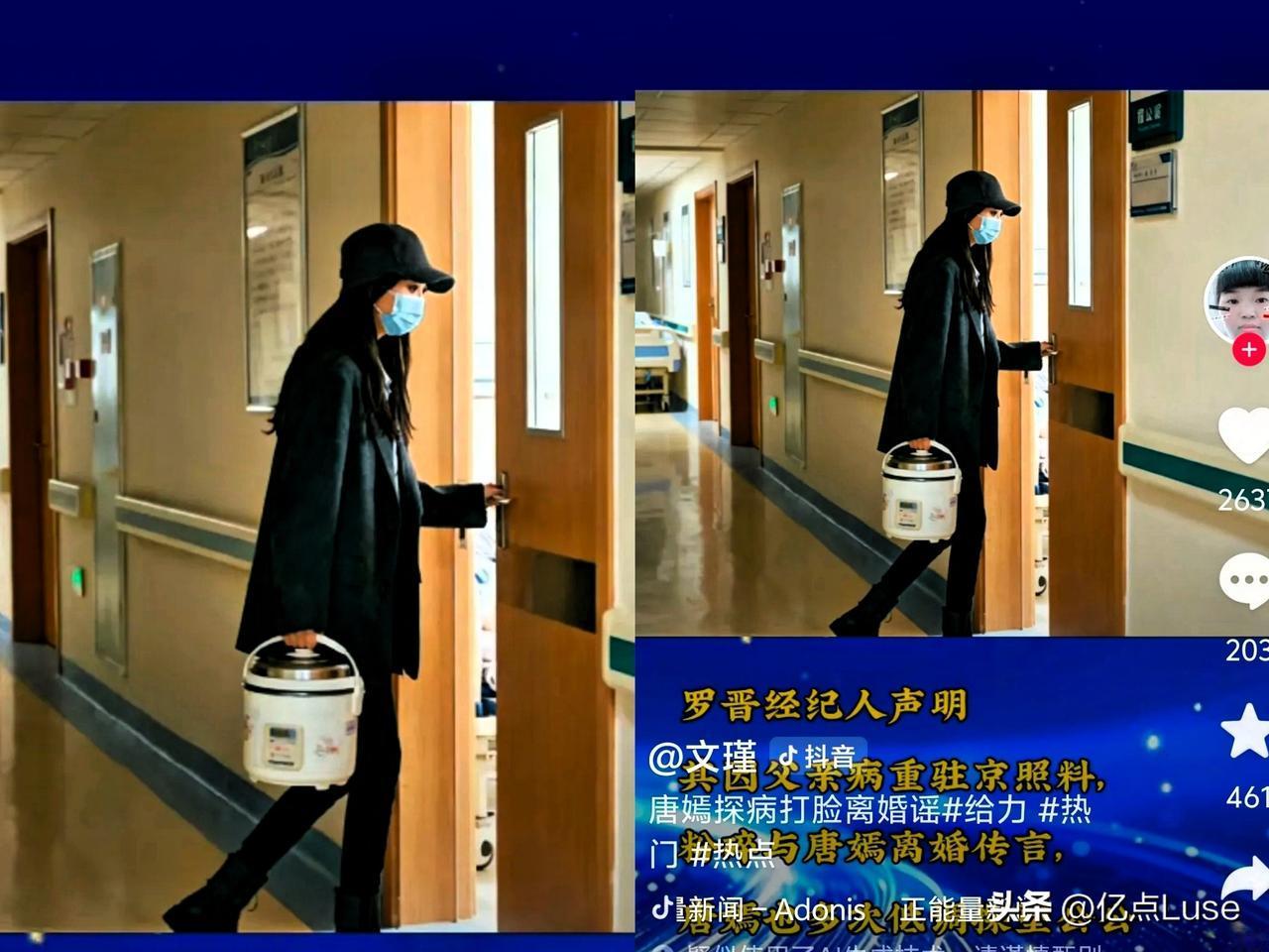 唐嫣提着一个硕大的电饭煲去探视重病的公公!就这一个镜头就粉碎了夫妻离婚的谣言。 看到罗晋和唐嫣的团队发布的声明,真的觉得某些人为了流量无端造谣,实在是太离谱。 本来娱乐圈的夫妻就难长久,人家明明感情深厚,夫妻恩爱,偏偏见不得人家恩爱。 分居分手的传言飘了有一阵子了,真的影响到罗晋和唐嫣的形象。连我都怀疑罗晋怎么那么差劲儿。 我看过罗晋的《侦察英雄》,他演绎的抗美援朝英雄梁辰,好看。这部连续剧值得二刷。 我没看过唐嫣的连续剧,只看过《繁花》的某些片段,感觉唐嫣扮演了一个傻憨憨。 估计生活中唐嫣也是一个可爱的傻白甜。 演员职业诱惑多,接触的都是俊男美女,所以演员的婚姻很难坚守。 记得何赛飞在一期访谈里就说,她是演员,经常演出,老公是圈外人,为了婚姻稳固,不让老公疑虑,她把挣得钱都给老公存着,就是为了让老公信任她,支持她。也是为了婚姻长久。 所以,咱们媒体人应该多曝光恩爱的夫妻,用拆散人家的谣言赚噱头不可取。 愿罗晋和唐嫣一直幸福下去。唐嫣