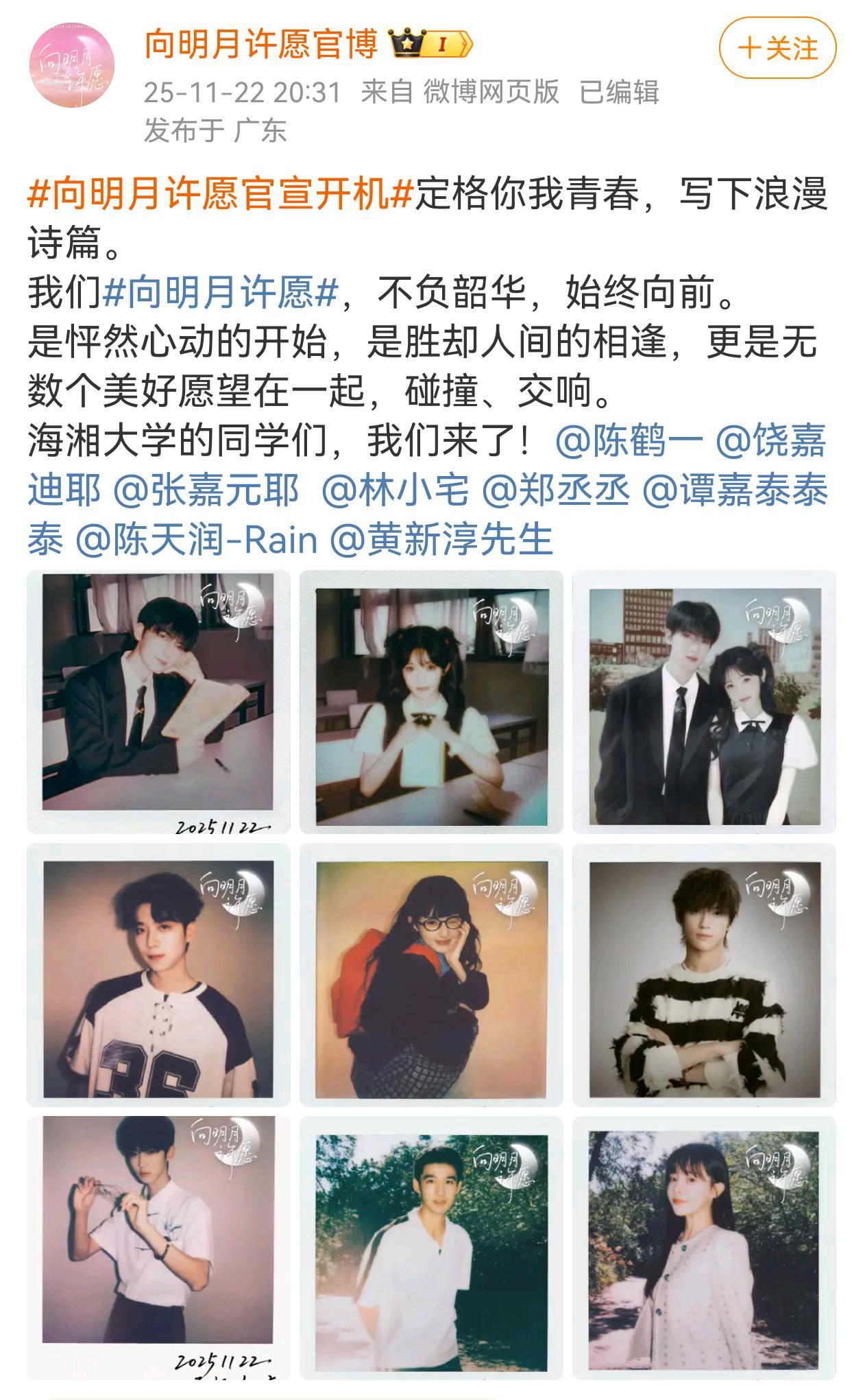 陈鹤一的现偶今天开机了,这个鹤一越来越好