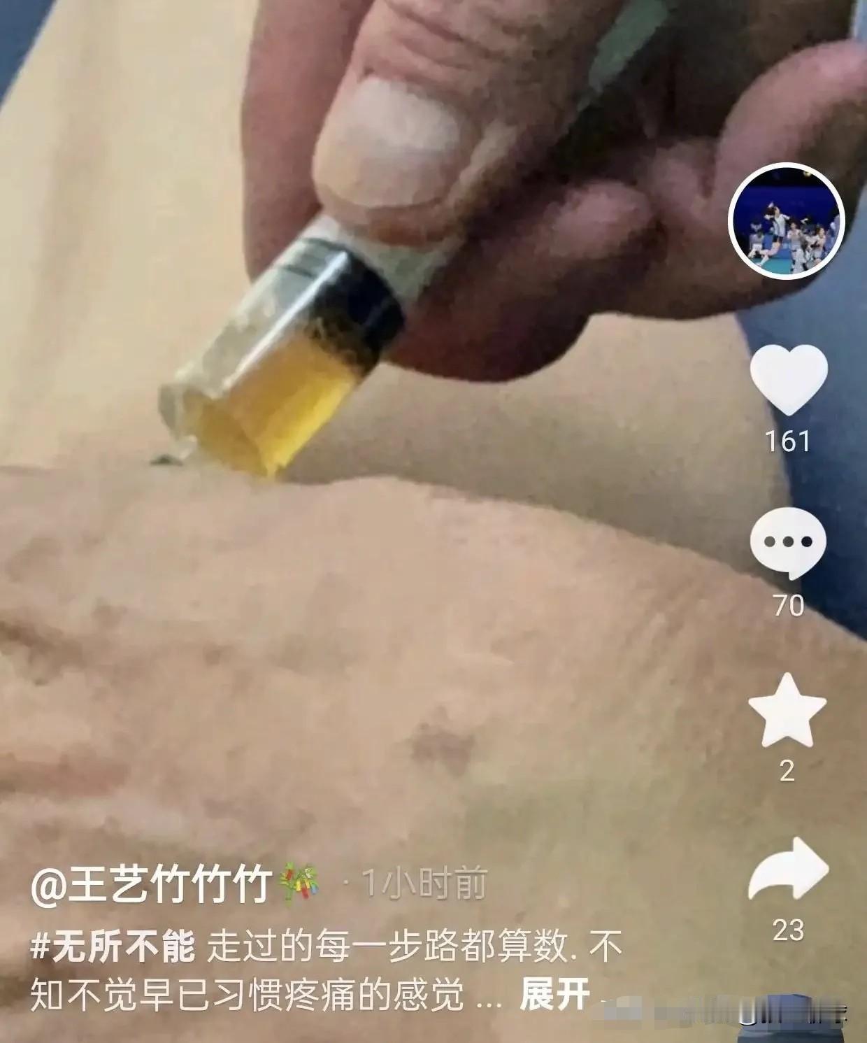今年全运会大家都觉得王艺竹发挥一般,感觉没有什么进步,还遭到一些网友吐槽。没想到比赛结束,她发了视频,医生给她膝盖抽积液,该多疼啊!原来受伤这么严重,坚强的竹子发图配文,“慢慢习惯了疼痛”,运动员真心不容易,比赛训练都是伴随着伤病!所以,网友看到球员比赛状态不佳,也不要过分吐槽指责,可能球员们另有隐情!愿,竹子早日康复!