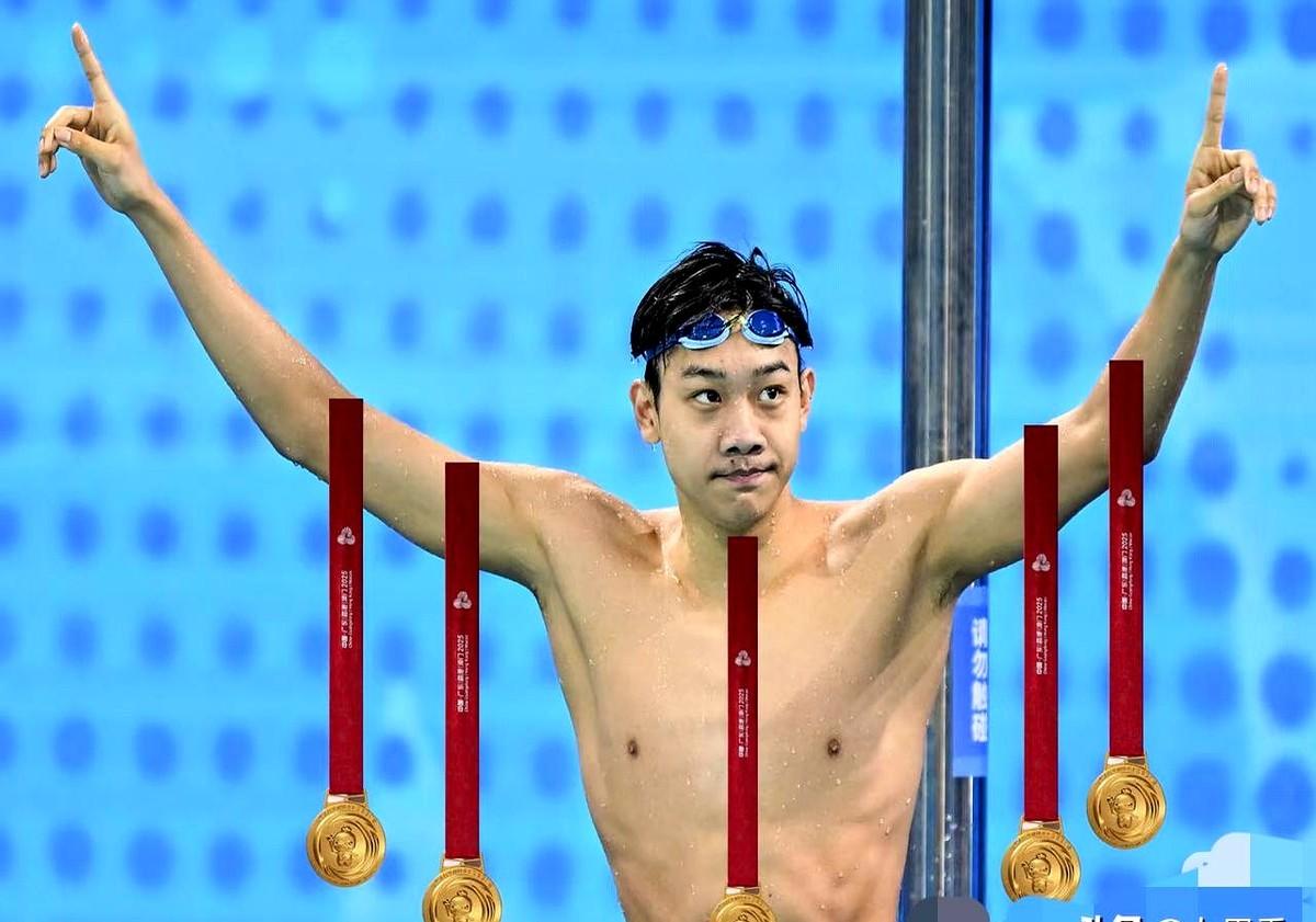 笑死,我宣布,张展硕这张照片封神。 这小子全运会太能打了,400米自由泳3分45秒21拿金牌,离全国纪录就差一点。还在200米和接力赛里拿了奖牌,成了多金王。教练说他训练拼命,技术还能再打磨;孙杨也夸他,说年轻选手冒头是中国游泳的好事。现在他已经进了世锦赛名单,要去比400和1500米自由泳。 有人说他张扬,可我觉得有实力就该自信啊,就像班里考第一的孩子敢说下次还拿第一,那是底气不是狂。真的英雄出少年,等着看他在世界赛场冲得更远。