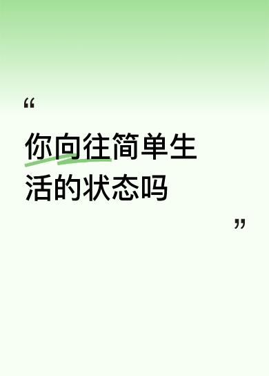 我超向往简单生活状态! 现在好多人追求“深度思考”,可想来想去,问题依旧在,自己还在原地打转。 真正想做的事,不过是清晨喝杯温水、出门走走。理想的简单生活,包含自由、宁静、快乐和满足。不用被外界纷扰,工作不忙时,一年来两三次旅行,看看外面的世界。有一定积蓄,应对突发状况。父母健康,有房有车有存款,没压力,多惬意!