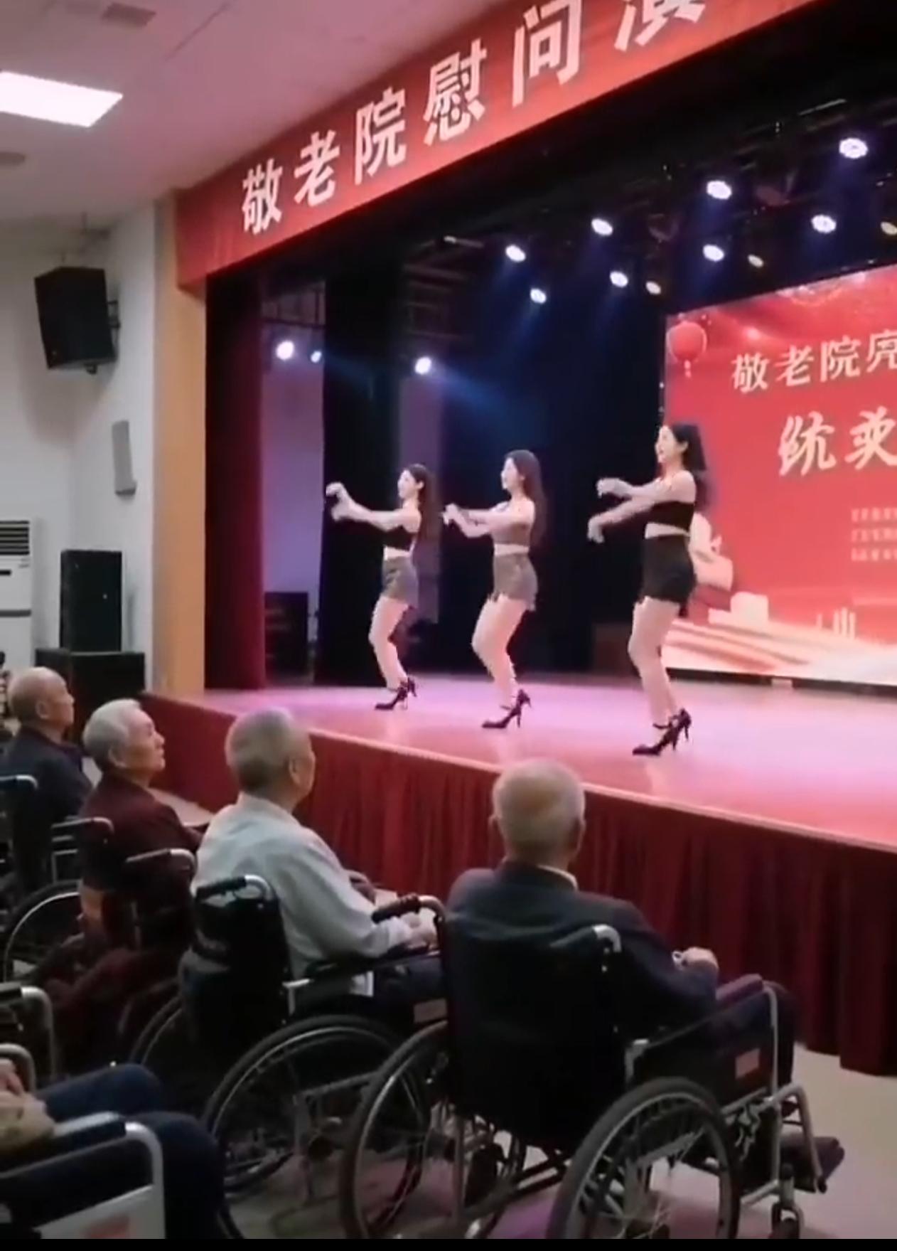 现在养老院的领导真是懂得人心呀,慰问活动上安排美女来跳舞[笑哭]看的我也开心开心。 听说看美女就能年轻10岁?容易引起男人的第二春?使得不少老人容颜焕发,返老还童啊,这架势,养老院的业绩也差不了多少。 自古红颜祸水,英雄难过美人关。这句话话一点都不假。 你们说这些老人现在真的还有那个生理需求吗?[笑哭] 不过欲望多容易伤身啊。如果你到了70岁,你看美女还有兴趣吗? 趁年轻多挣钱吧。老了去个好点的养老院才是真的[笑哭]