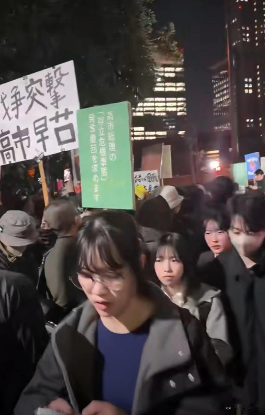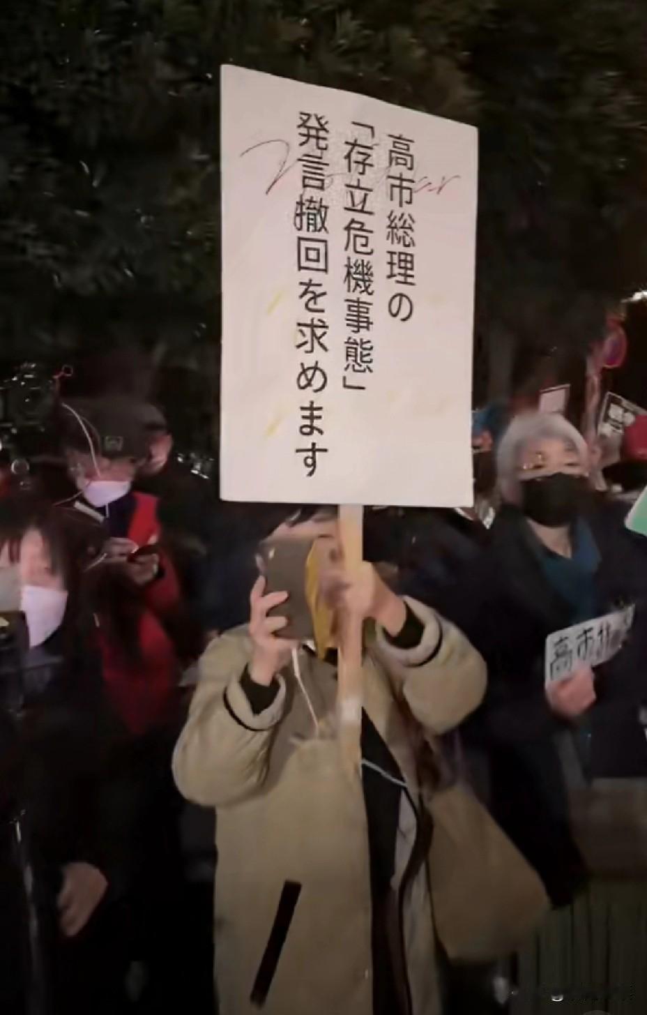 在搞事早喵住的首相官邸前,聚集了很多人抗议。他们要求搞事早喵收回涉台错误言论。