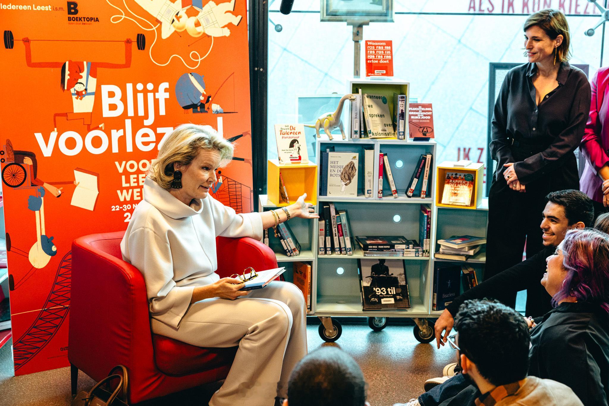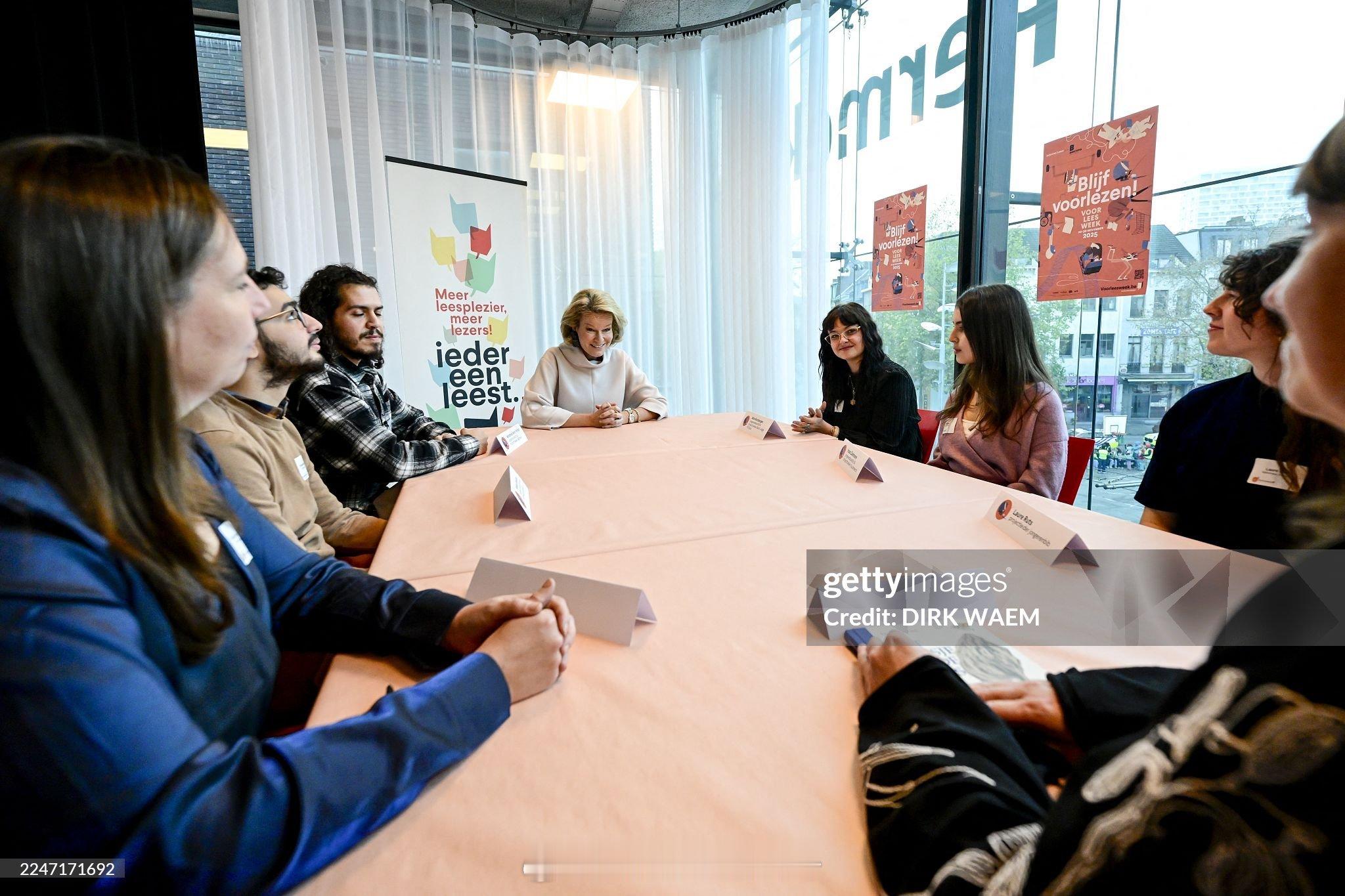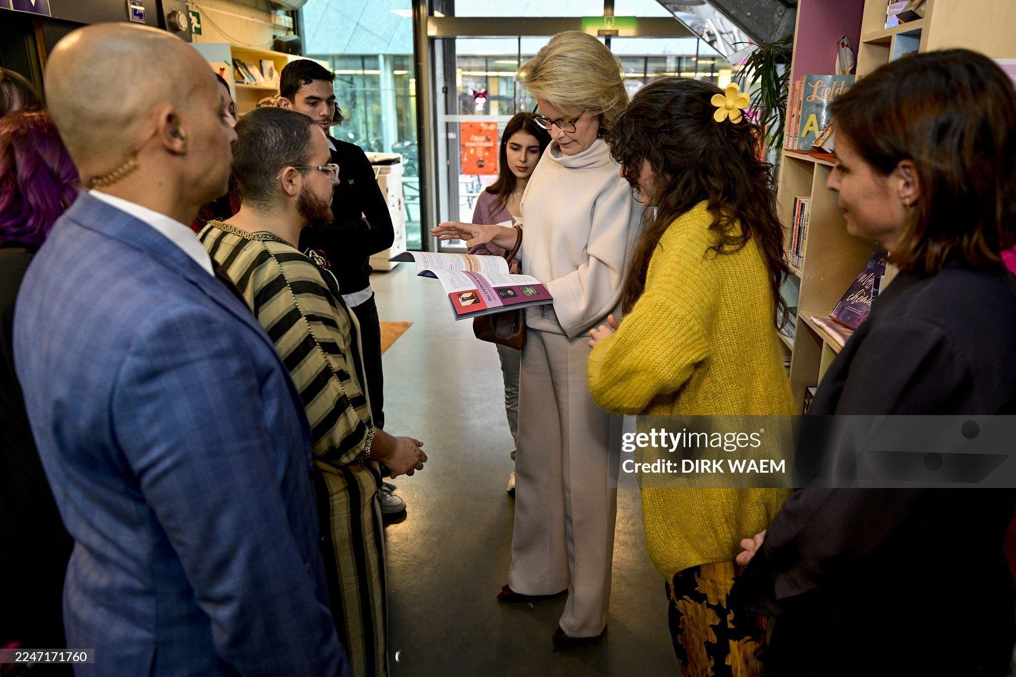 11.21 比利时王后玛蒂尔德出席朗读周的相关活动,穿的natan