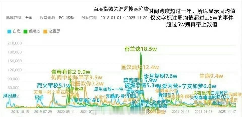 白鹿、虞书欣、赵露思近八年关键词百指对比,虞书欣的苍兰决断层领先了
