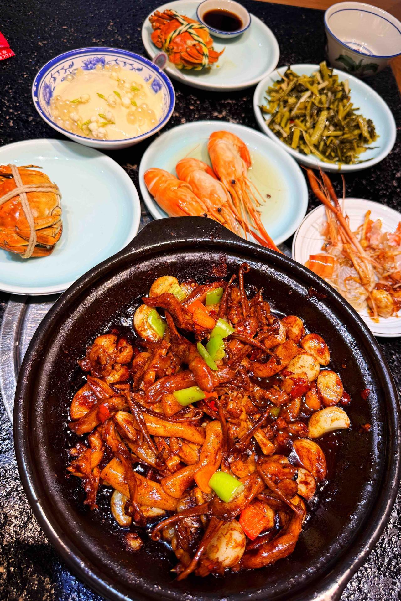 吃个特色菜,黄牛肥肠,老板说是延边特色菜。都是各种牛下货,有大肠、小肠、牛肝,牛