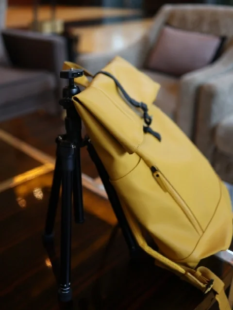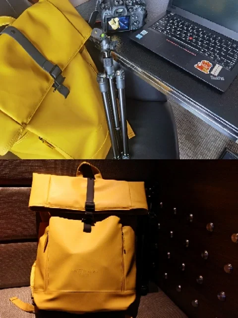 🌟卷顶式设计可以根据带的行李多少自由调节,背后有一个笔记本电脑夹层和一个隐藏式证件袋。这次出门拍摄,我带一台13寸的手提电脑,单反相机,无人机,收纳后33mm的脚架,还有日杂用品,把卷顶打到最高一层,刚好全部装下。