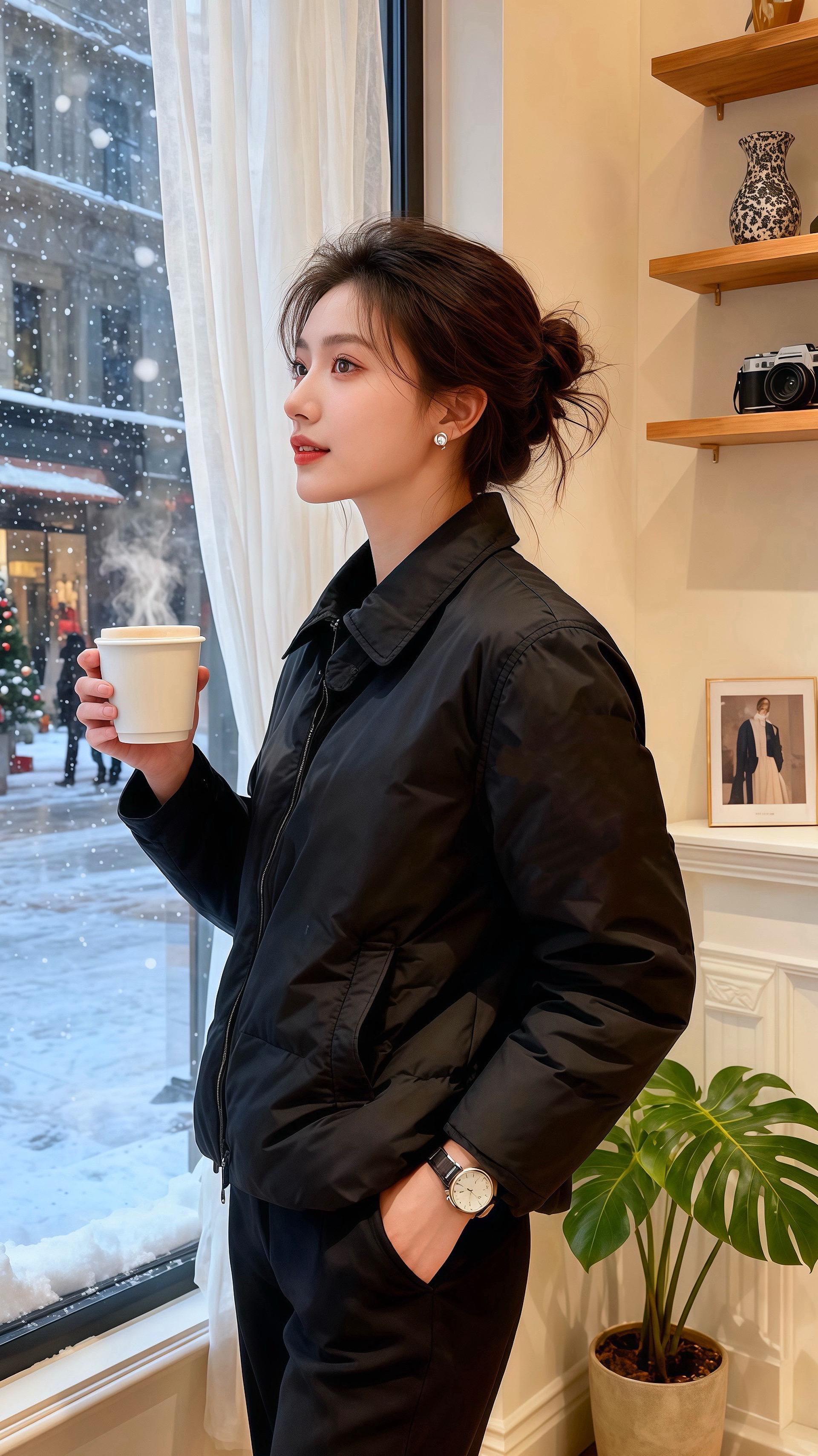 她回头撞进皓明的眼睛——他裹着同色系大衣,肩线落了点雪,像把冬夜揉进了骨相里。“你怎么来了?”许妍指尖蜷了蜷,夹克的垂感贴在腕骨上,暖得刚好。