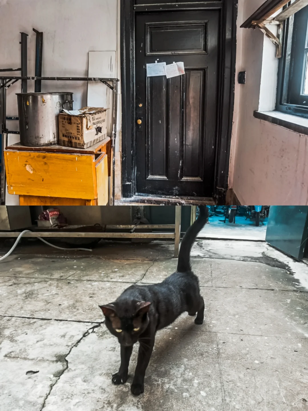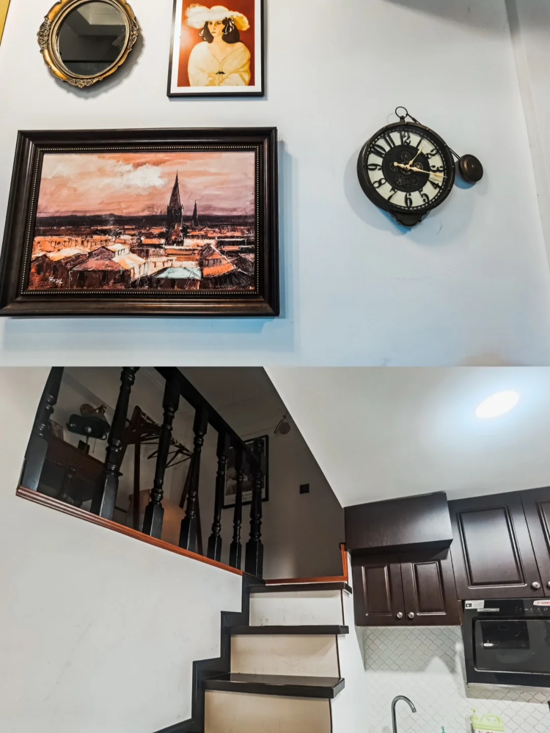 🏘房内整洁干净,装修风格有复古的感觉。两层阁楼式分布,一层为迷你客厅,厨房,卫生间;二层为榻榻米式大床和一个榻。但鉴于房子面积较小,建议1-2人入住。院子里有一只非常亲人的黑猫,有时躲在楼道里偷偷的看着我。