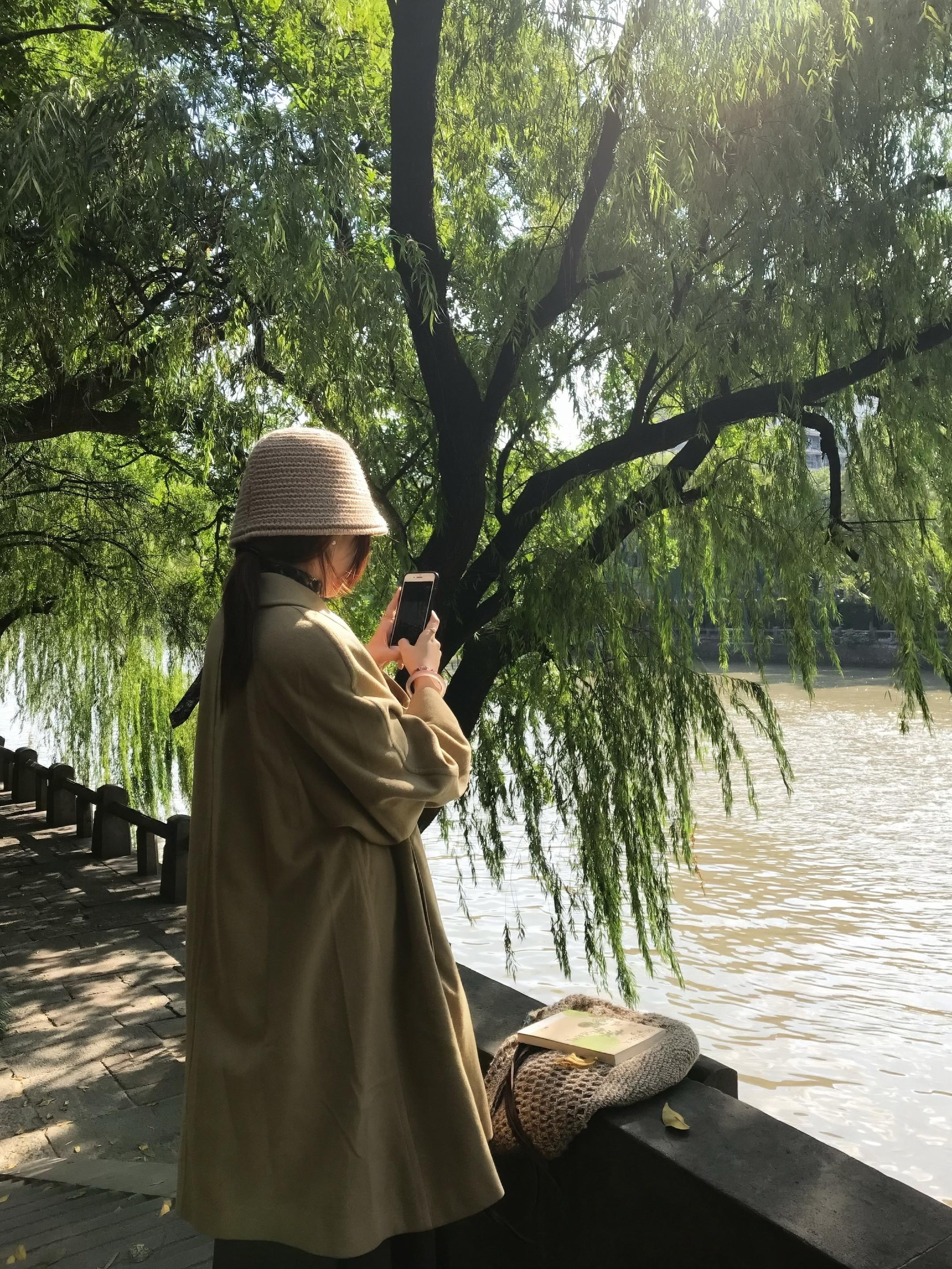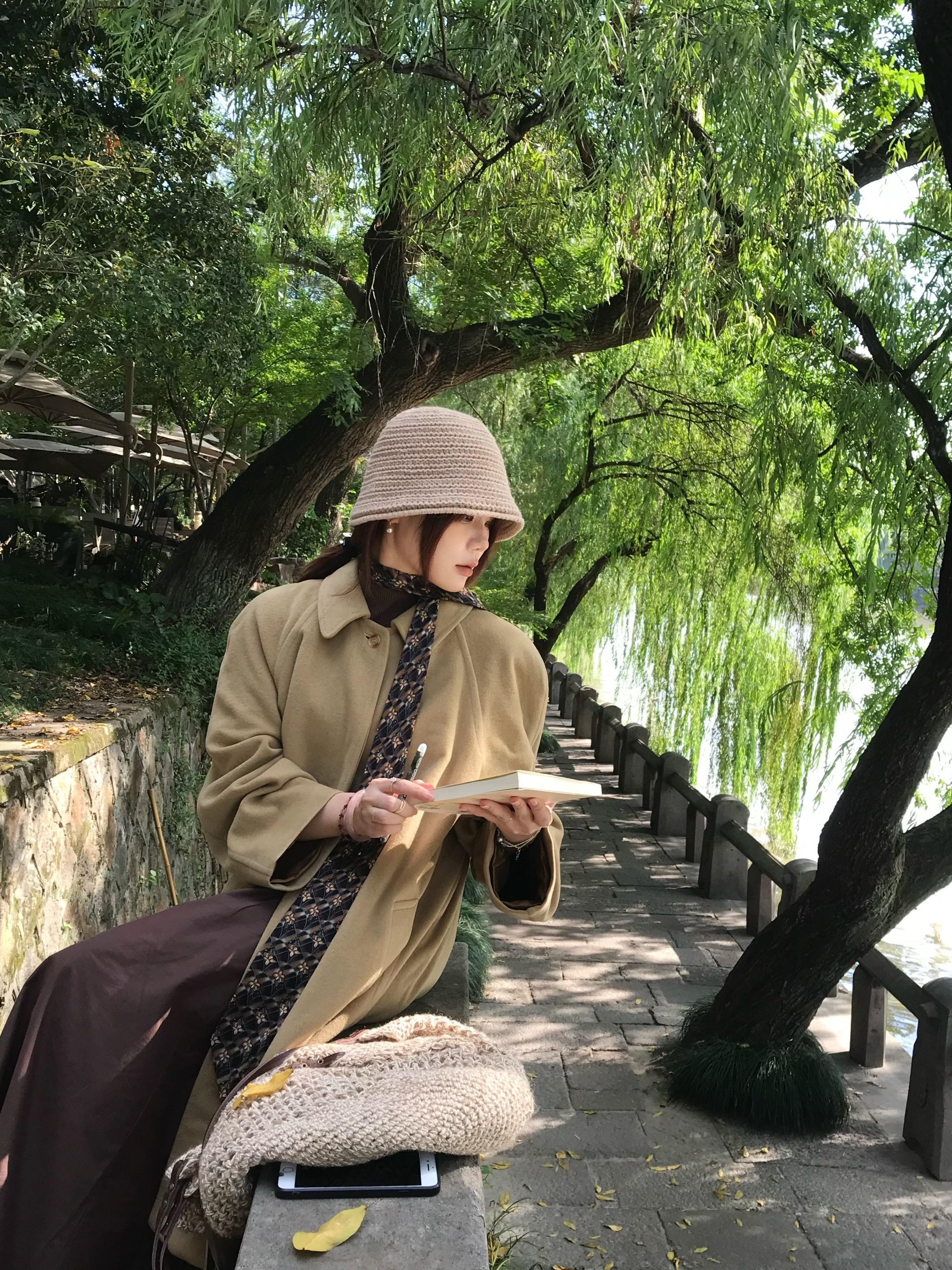 棕色露肩上衣+白短裙,一句话:把秋天的温柔和夏天的清爽一起穿在身上。棕色像