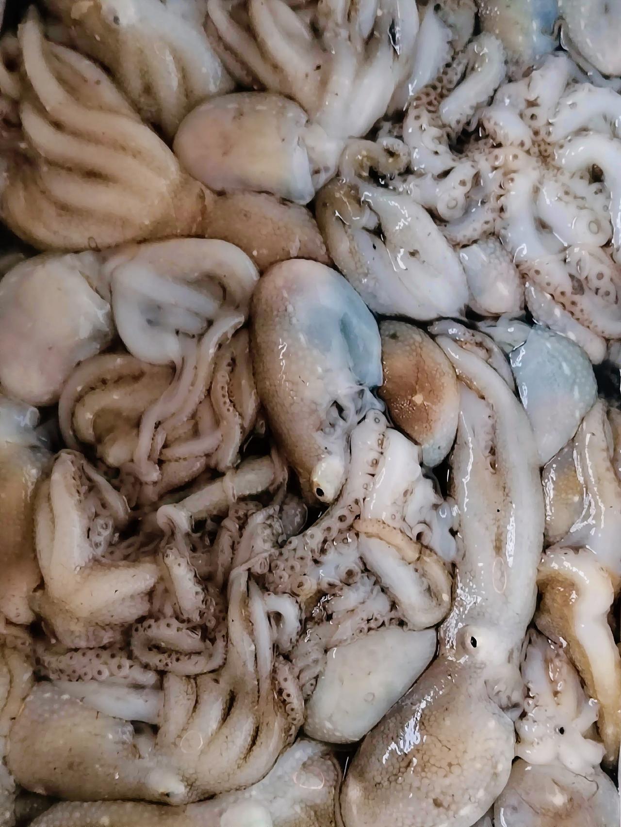 昨天女儿到烟台办事情,回来捎的虾和巴大蛸。 打开保温箱一看,巴大蛸那一条条的扒抓子全都扒在保温箱子的箱壁上面,个个鲜活。 女儿买的多,一次吃不完,我便分装到袋子里,放到了冰柜里冷冻着。 看到巴大蛸,就想起来巴大蛸炒青椒、炖大白菜,都特别好吃。