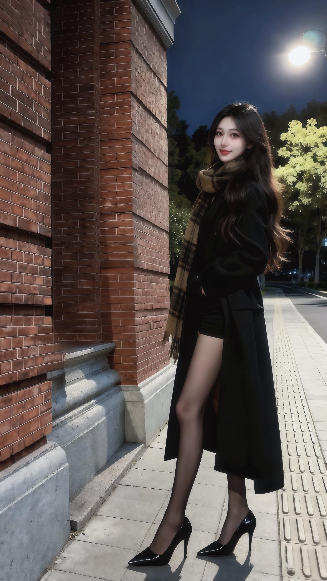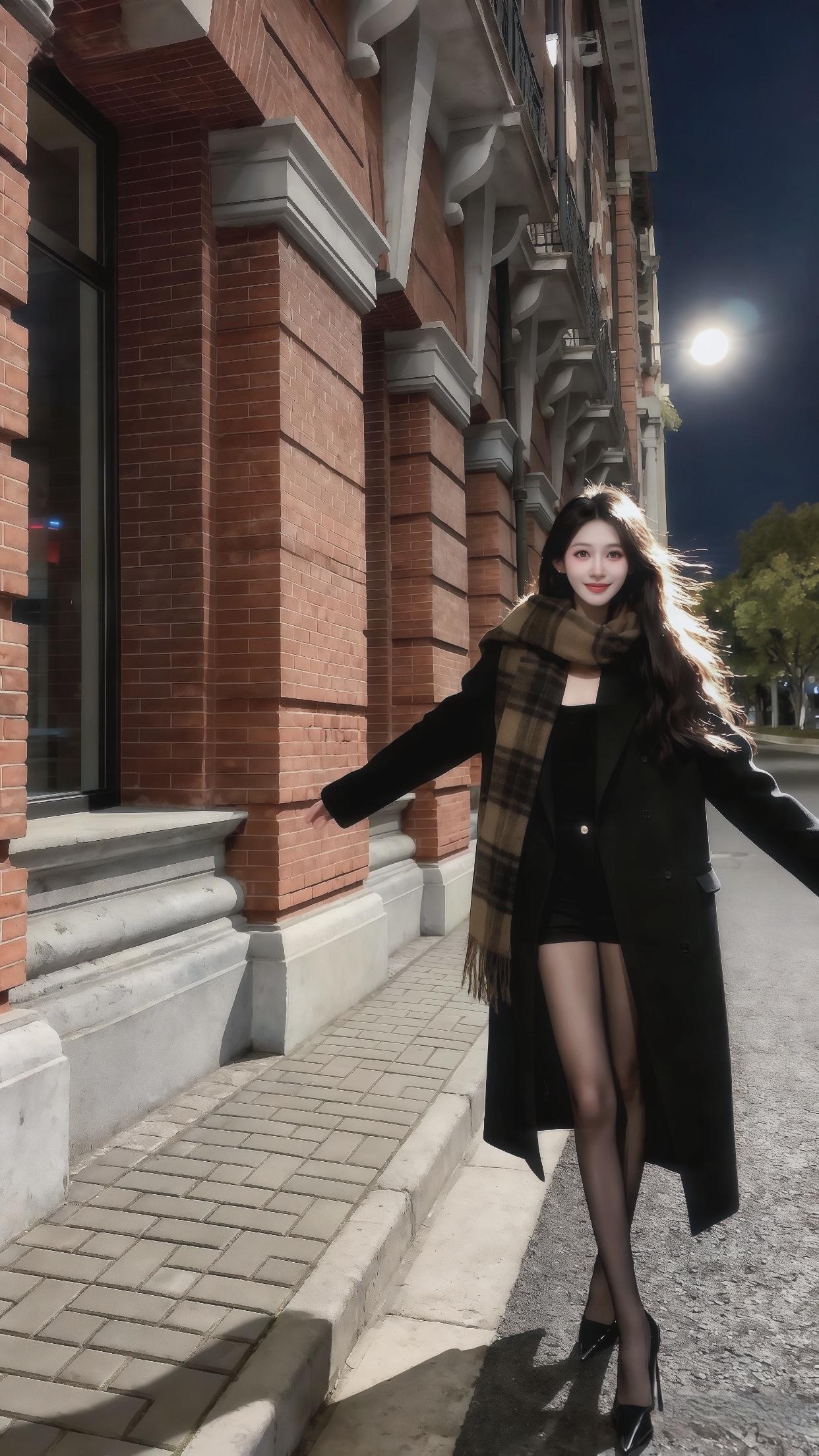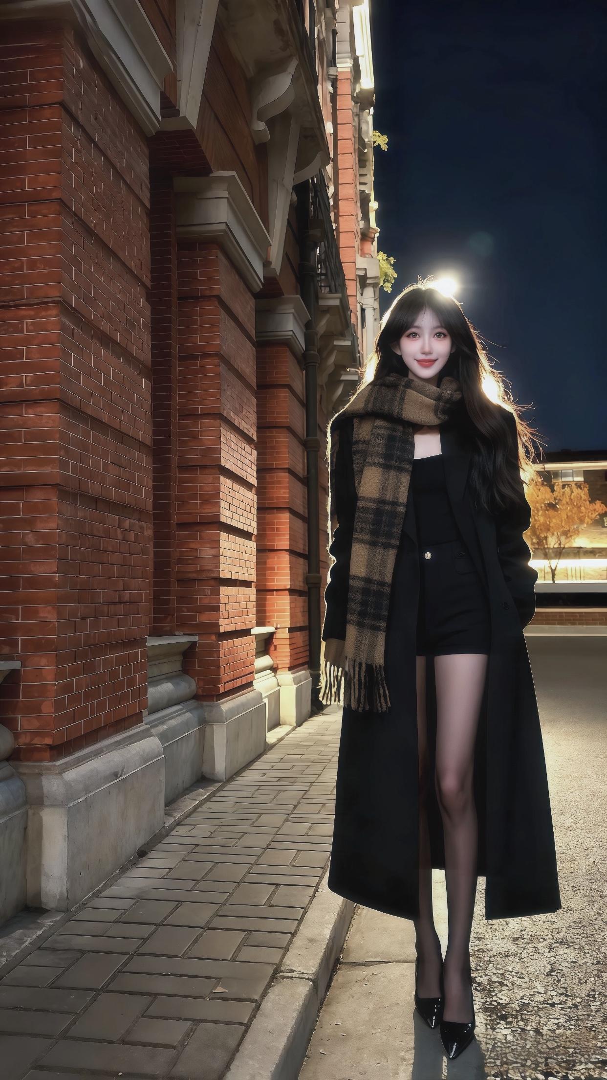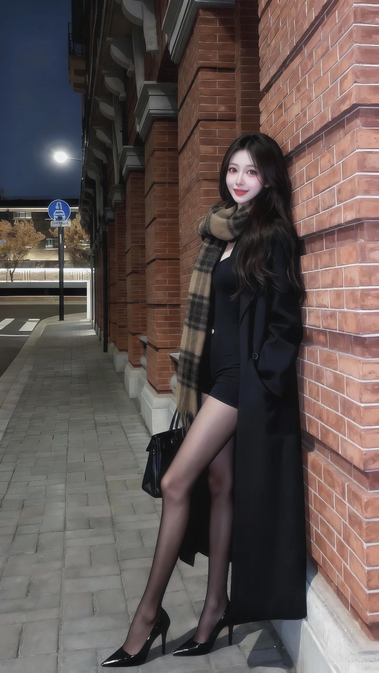 优雅自信穿搭分享都市时尚女郎,黑衣黑裙,优雅行走在红砖街头。