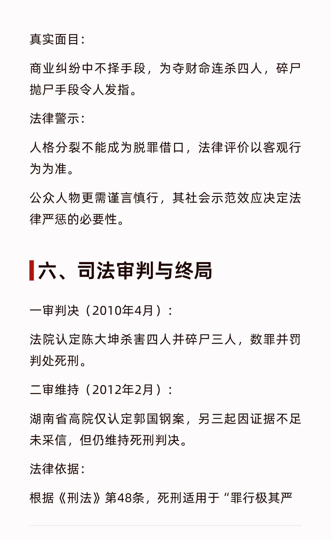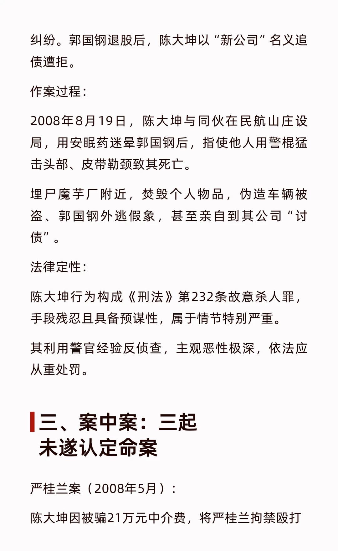从警界精英到血色恶魔:陈大坤的罪恶深渊与 陈大坤从警界精英堕落为血色恶魔,因商业纠纷命杀四人,手段残忍。案件中,他利用警官经验反侦查,但证据不足未认定其他案件。最终,法院认定其杀害郭国钢并碎尸三人,判处死刑。 律师咨询 律师 法律服务 北京律师 法律咨询 商业纠纷 故意杀人 故意杀人罪 刑事辩护