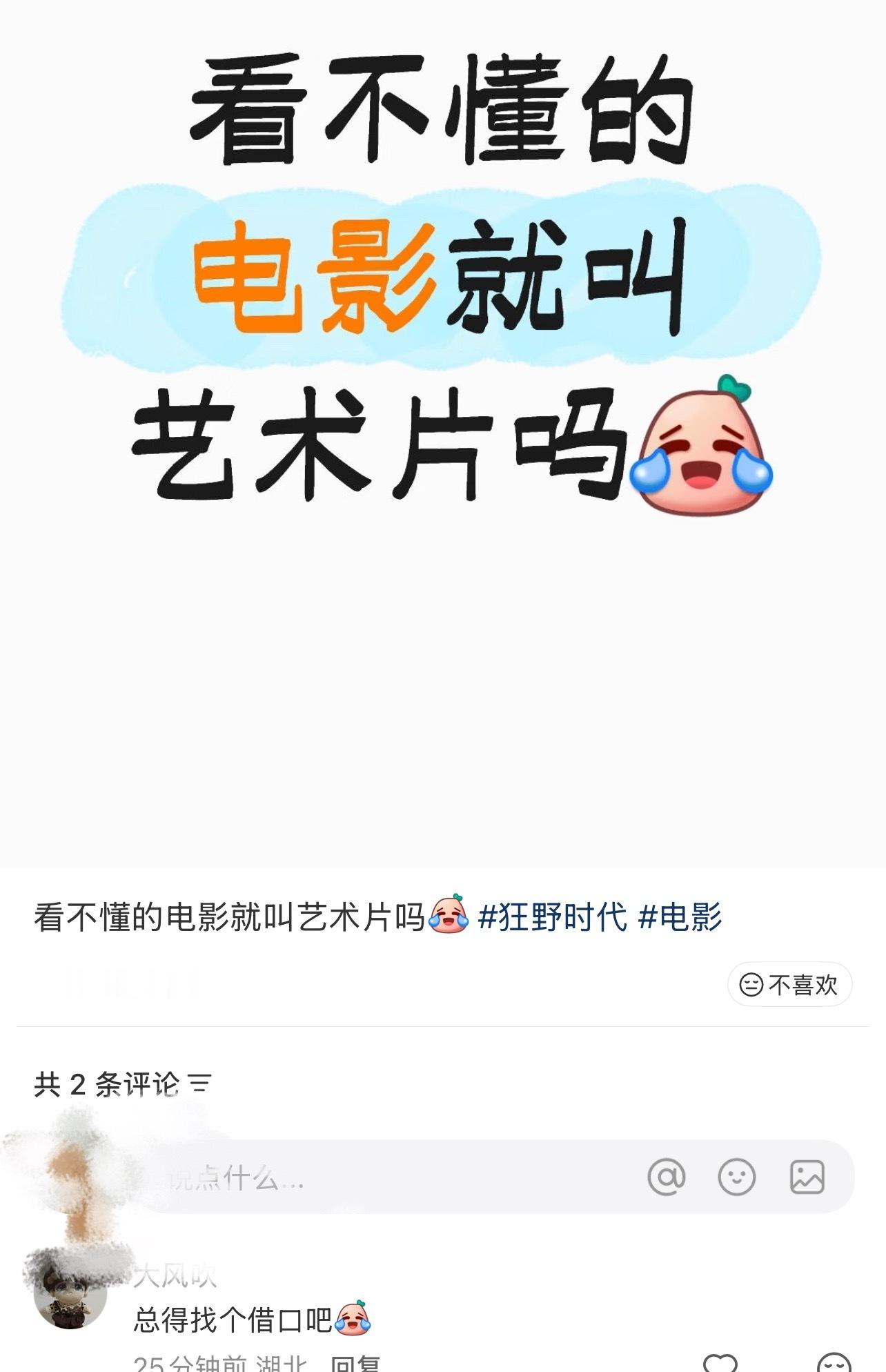 第一次看到刚上映就开分的,观众觉得看不懂,粉丝说是艺术片感觉这种艺术片不适合投放在电影院,毕竟大众认知里,电影最基本的不就是讲好故事吗?