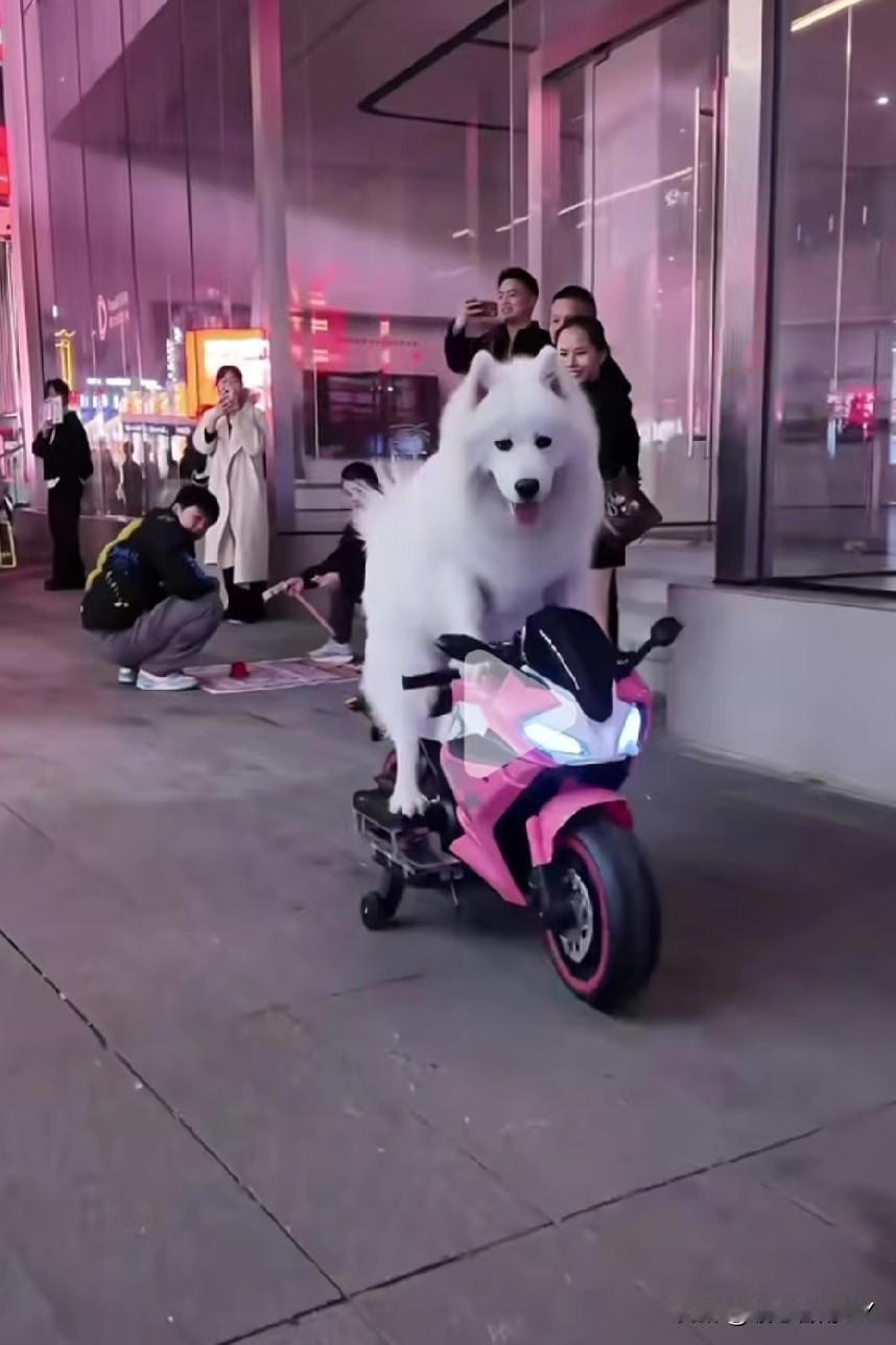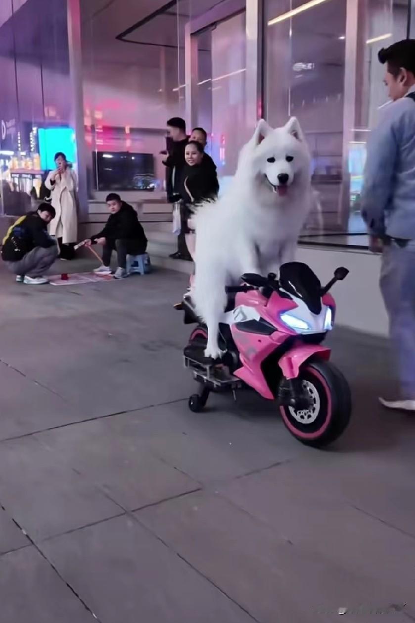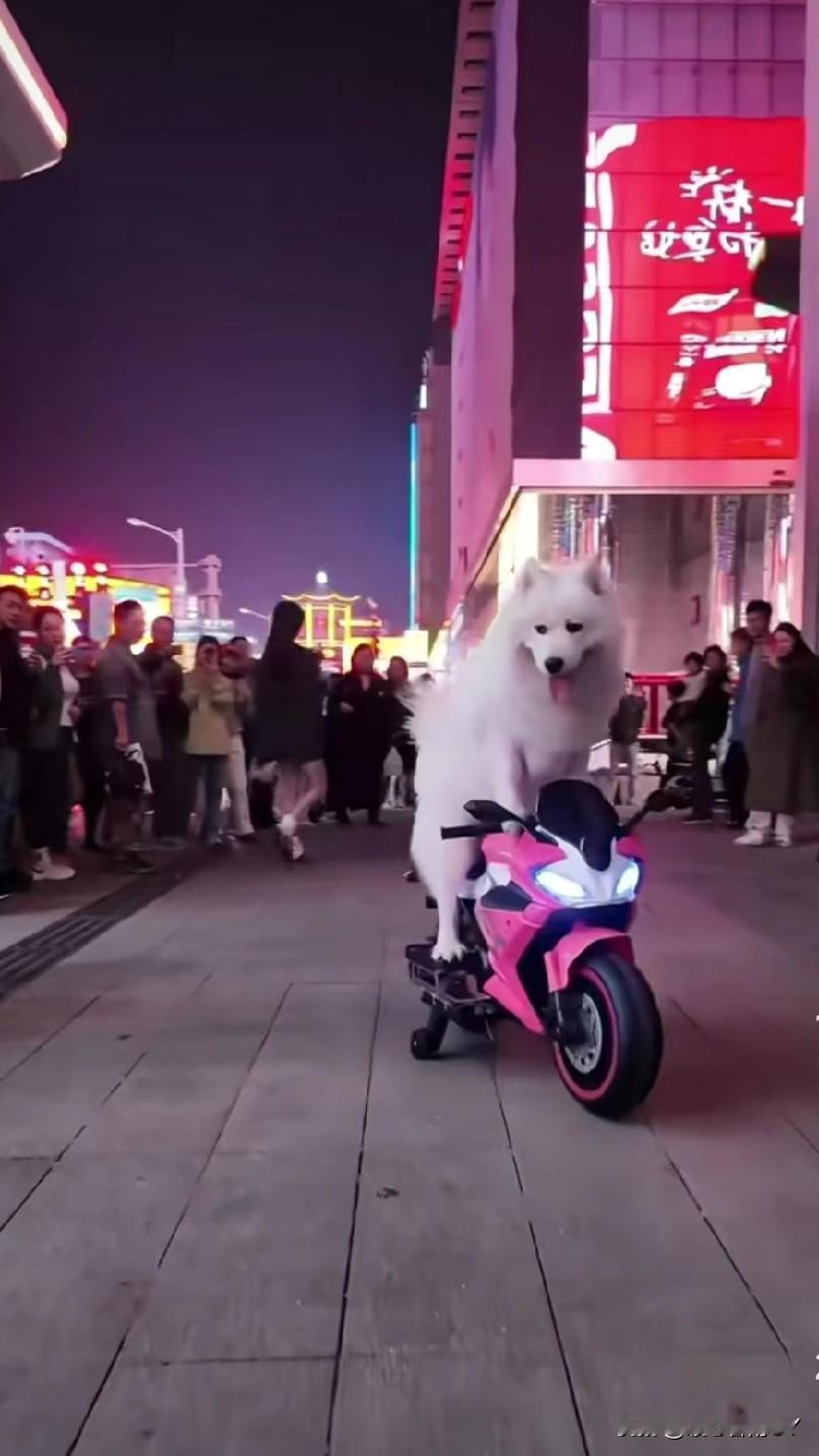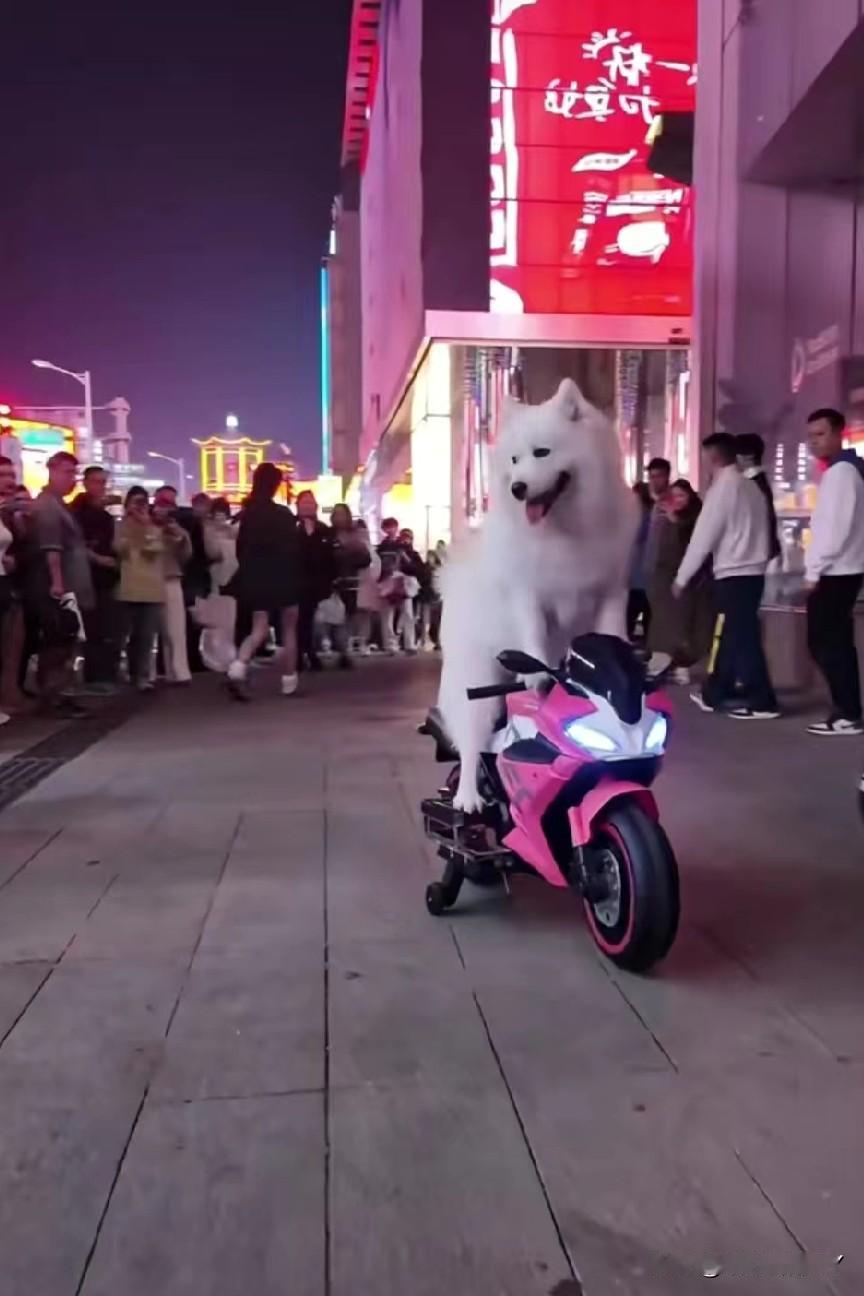 长沙广场惊现“机车萨摩耶”这届训犬成果离谱到出圈! 在长沙广场的斑斓夜色里,最靓的“明星”竟是一只骑着摩托的萨摩耶犬! 华灯初上的商业街人来人往,它神气十足、威风凛凛地驾着粉色迷你摩托车闪亮登场,蓬松的白毛在霓虹灯下像一团漂浮的云朵…… 更令人叫绝得是,只要前方有人,它还会“滴滴”按喇叭示意让路,那娴熟的小模样好似一位经验老道的司机,把周围的路人都看的目瞪口呆,手机快门声此起彼伏~ 直到穿红衣服的主人喊着“耶耶”把它抱下车,大家才如梦初醒:原来这不是真正的“机车狗”,是主人把它训练得这般有“社交礼仪”! 评论区瞬间沸腾了,有人笑道:“它骑的比我都稳”,有人调侃“这属于无人驾驶吧”,还有人羡慕道:“我家狗只会拆家”…… 实际上,这只“机车耶耶”走红的背后,是大家对毛孩子可爱瞬间的“集体沉醉”。 在忙碌的生活里,这样一只会骑摩托、懂礼貌的“修练犬”,不正像一颗糖,融化了所有的疲惫吗? 希望每个毛孩子都能被如此温柔对待,也期待更多治愈的萌宠瞬间降临! 网友们,你们被触动了吗?
