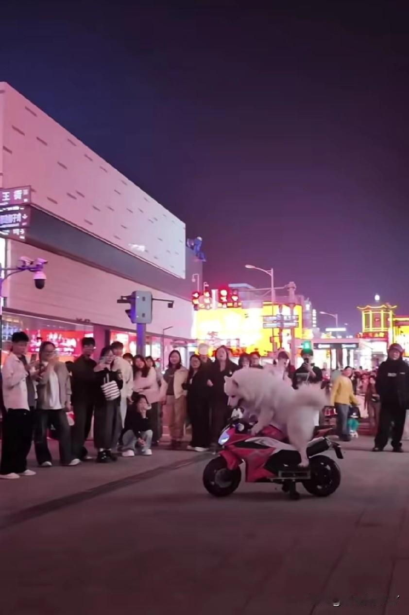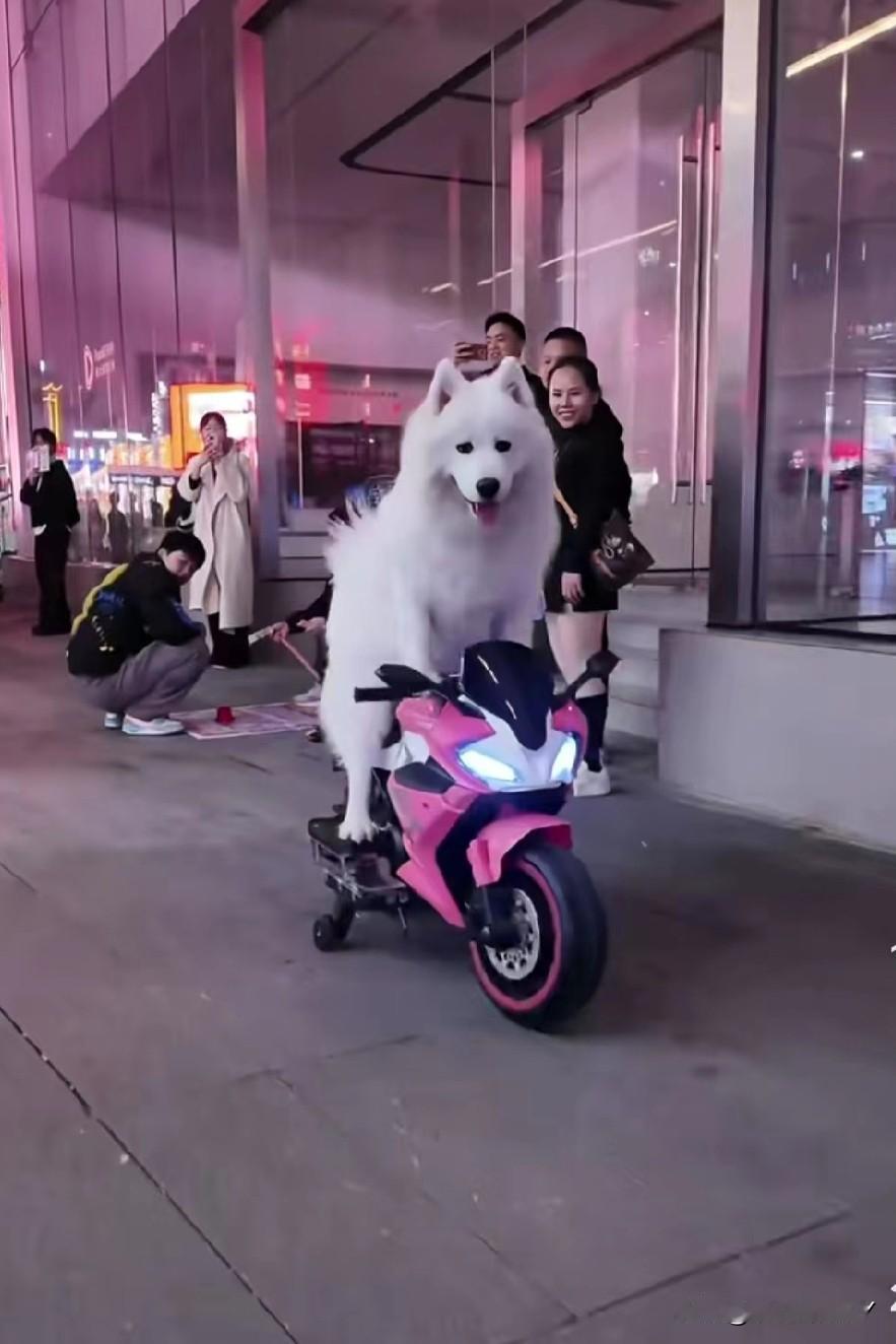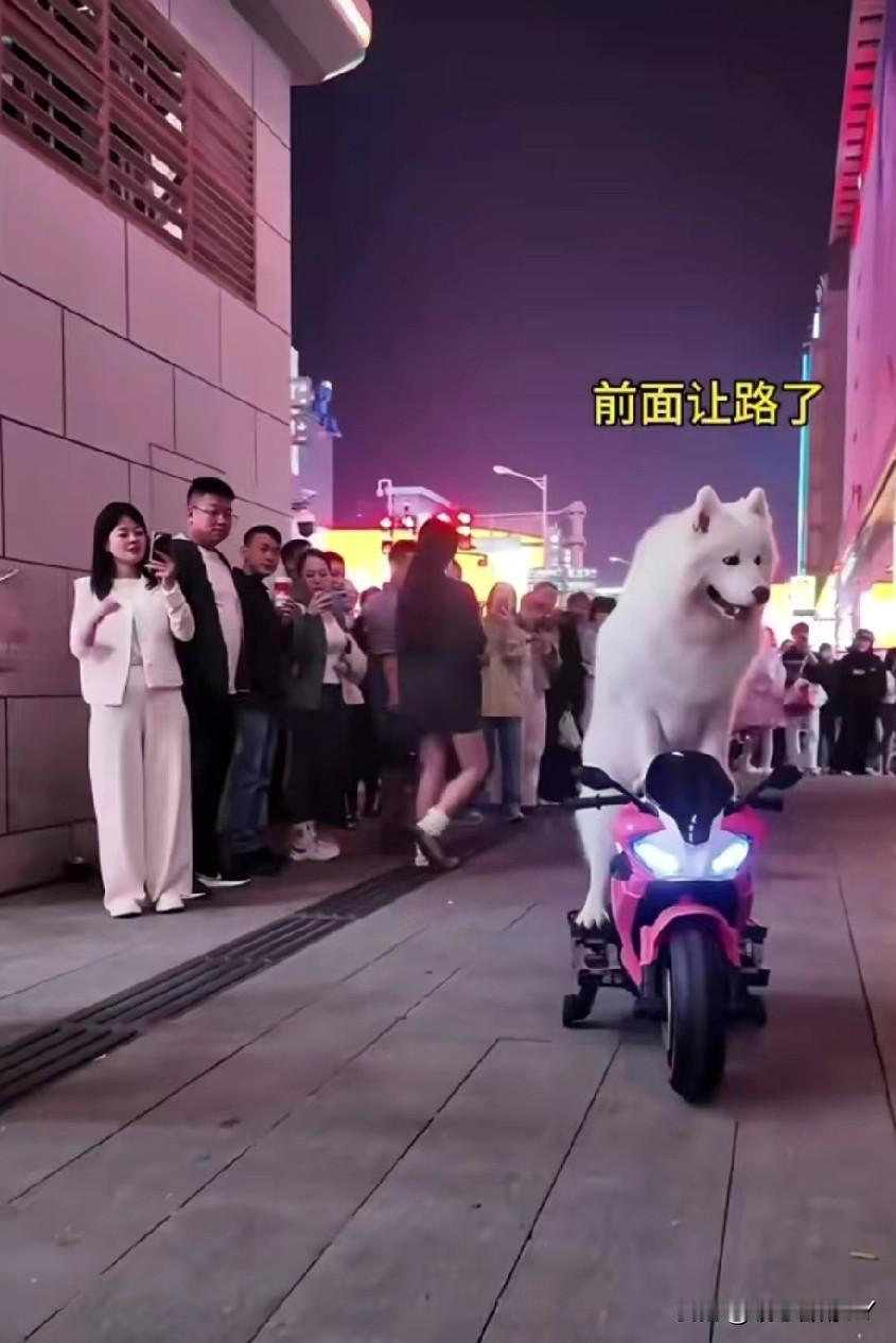 长沙广场惊现“机车萨摩耶”这届训犬成果离谱到出圈! 在长沙广场的斑斓夜色里,最靓的“明星”竟是一只骑着摩托的萨摩耶犬! 华灯初上的商业街人来人往,它神气十足、威风凛凛地驾着粉色迷你摩托车闪亮登场,蓬松的白毛在霓虹灯下像一团漂浮的云朵…… 更令人叫绝得是,只要前方有人,它还会“滴滴”按喇叭示意让路,那娴熟的小模样好似一位经验老道的司机,把周围的路人都看的目瞪口呆,手机快门声此起彼伏~ 直到穿红衣服的主人喊着“耶耶”把它抱下车,大家才如梦初醒:原来这不是真正的“机车狗”,是主人把它训练得这般有“社交礼仪”! 评论区瞬间沸腾了,有人笑道:“它骑的比我都稳”,有人调侃“这属于无人驾驶吧”,还有人羡慕道:“我家狗只会拆家”…… 实际上,这只“机车耶耶”走红的背后,是大家对毛孩子可爱瞬间的“集体沉醉”。 在忙碌的生活里,这样一只会骑摩托、懂礼貌的“修练犬”,不正像一颗糖,融化了所有的疲惫吗? 希望每个毛孩子都能被如此温柔对待,也期待更多治愈的萌宠瞬间降临! 网友们,你们被触动了吗?
