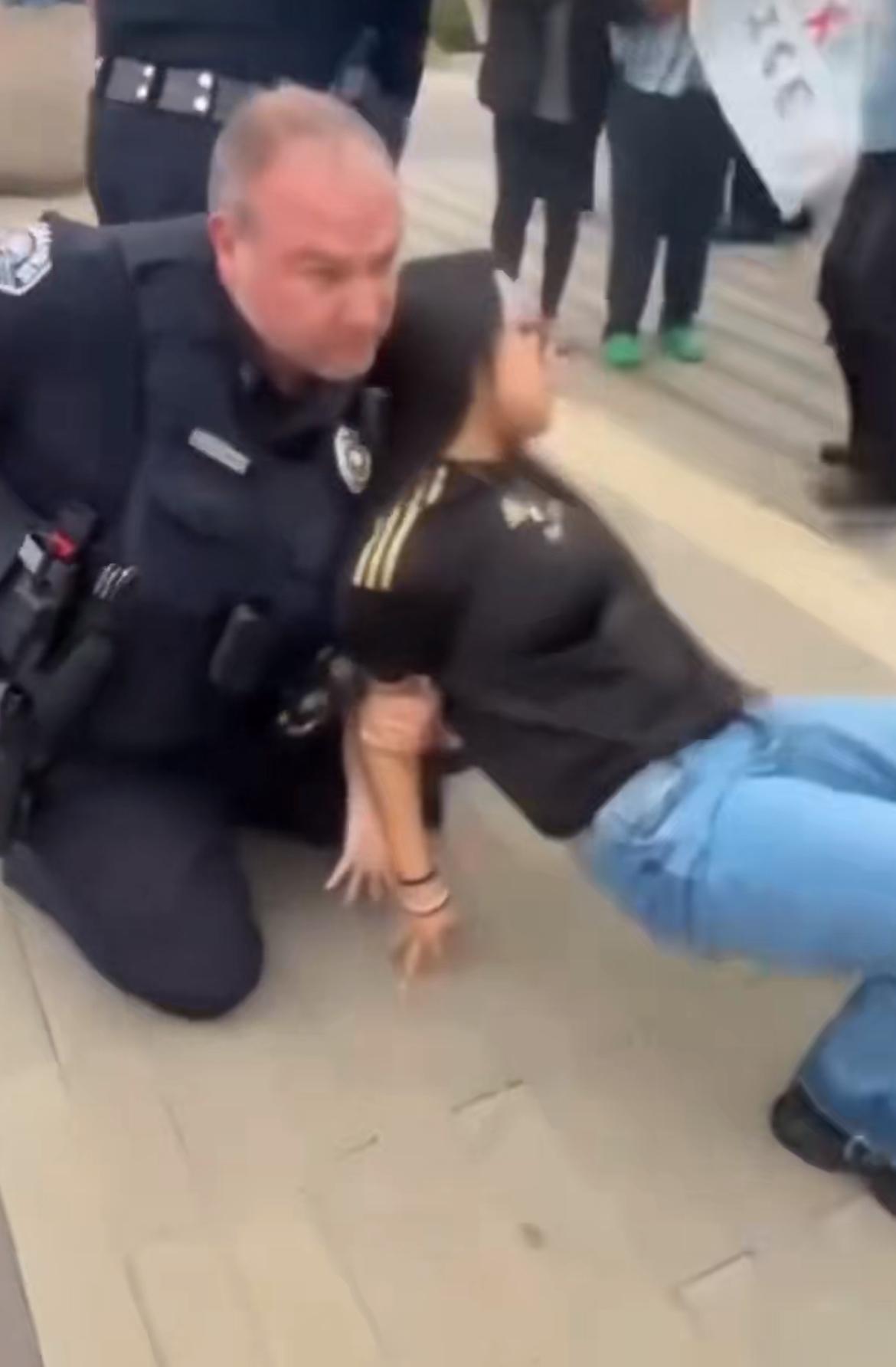 北卡罗来纳州,一名激进的亚裔女子把饮料倒在美国警察的头上后迅速逃跑,警察立马追逐迅速把她制服,并非常愤怒地铐上手铐,然后像拎小鸡一样把她提走,边走边骂她f*ck you 女子发出了杀猪般的声音,公然袭警的她将面临严重的指控