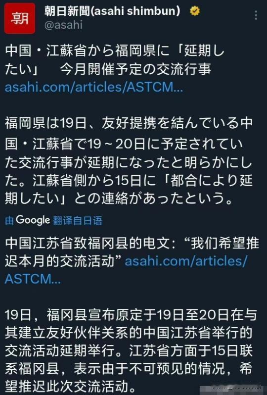 日本福冈县通过社交媒体宣布,中国江苏省向日本福冈县通报,由于不可预见的原因,推迟原定于11月19日至11月20在江苏省举办的交流活动。 看似普通的交流泡汤,实则是中日关系早就积重难返的直白写照,别再自欺欺人说什么“友好”了,现在的中日关系,早就被日方一次次突破底线的操作,磨得只剩表面客套,稍微有点风吹草动,民间和官方的默契就碎得稀里哗啦! 有人说不就是个交流活动延期吗?至于上纲上线?那可真是太天真了!这事儿根本不是“不可预见”,而是“早有预兆”,全是日方自己作出来的信任崩塌。 日本首相高市早苗上任还没一个月,就急着在众议院预算委员会上放话,说“台湾有事”可能算日本的“存亡危机事态”,言外之意就是能拿这个当借口动武。 以前再右翼的首相也只敢卸任后叨叨两句,高市早苗倒是刷新了下限,成了日本战败以来第一个在国会这种正式场合,把台湾问题和日本集体自卫权绑在一起的在任首相,明晃晃暗示要武力介入台海。 中方连着提了好几次抗议,她倒好,国会追问了好几次,硬说“没必要撤回”,连日本前首相鸠山由纪夫都看不过去,发文说台湾是中国内政,日本不该插手,可人家就是铁了心要踩红线。 更讽刺的是,刚说完这话没几天,日本就给鼓吹“台独”的人授勋,这一套组合拳下来,简直是把“一个中国原则”当成了摆设。 历史问题上,日本更是频繁挑衅中国底线,就说2025年4月靖国神社春季大祭,前首相石破茂还以“内阁总理大臣”的名义献了“真榊”祭品,到了8月15日战败纪念日,又是送祭祀费又是政客亲自参拜,要知道,那里面供奉着东条英机等14个甲级战犯,全是当年双手沾满鲜血的刽子手。 这还不够,2025年启用的新版初中教材更离谱,80%的主流教材都在弱化战争罪责,把南京大屠杀改成“南京事件”,还扯什么“受害人数尚无定论”,卢沟桥事变说成“日中两军冲突”,合着当年烧杀抢掠的侵略行为,在他们笔下成了过家家? 这种对着历史硬改的操作,跟掩耳盗铃没区别,可偏偏日本政客乐此不疲,仿佛只要改了教科书,历史就能清零似的。 领土问题上,日方更是把“挑衅”当成了日常。2025年5月3号,一架日本民用飞机未经允许就闯进钓鱼岛领空,中方海警依法驱离,结果日方倒打一耙,说中方“侵犯领空”,还派F-15战机在旁边待命。 到了11月,中国海警正常巡航钓鱼岛,这一年都巡了三百多天了,结果日本内阁官房长官立马开记者会抗议,说“无法接受”,外务省还递抗议照会,被中方当场怼了回去。 美国还凑过来帮腔,海军作战部长说“理解日本的担忧”,合着在自家领土上执法,倒成了中方的不是?这种颠倒黑白的本事,真是练得炉火纯青。 最让人膈应的还是核污染水排海的事,简直把“信任”二字踩在脚下摩擦。 2025年累计排海都突破10万吨了,氚总量比上一年还多了1万亿贝克勒尔,结果还曝出检测铯-137的设备被篡改了参数,超标废水可能直接当成合格的排进海里。 中方从2023年就暂停进口日本水产品,后来虽说恢复了一部分,但福岛那10个都县至今还在禁令里,这不是中方故意刁难,是日方自己把路走死了——连检测数据都敢造假,谁还敢信你那套“符合国际标准”的鬼话? 军事上的小动作就更没停过,2025年日本防卫预算飙到8.7万亿日元,同比涨了9.4%,超三成的钱都用在进攻性武器上,买1000公里射程的导弹,还要部署在能覆盖中国沿海的地方,甚至刚修改完规则就向美国出口“爱国者-3”导弹,战后第一次卖致命武器。 一边喊着“专守防卫”,一边疯狂扩军,这就像邻居天天在你家门口磨刀,还说自己是为了“自卫”,换谁能安心? 民间的信任早就被这些操作磨没了,2025年的民调显示,65.2%的中国人对日本印象不好,日本那边更夸张,73.2%的人对中国没好感。中方这边想搞点交流缓和关系,日方却一边伸手要合作,一边在核心利益上捅刀子,这种“两面派”作风玩多了,谁还愿意真心实意打交道? 所以说,江苏和福冈的交流活动延期,不过是压垮骆驼的最后一根稻草。中日关系早就不是“有点小摩擦”那么简单了,是日方在台湾问题上踩红线、历史问题上装糊涂、领土问题上瞎胡闹、核污染水问题上不诚信、军事上搞扩张,一步步把双边关系的地基挖空了。 现在别说一场交流活动,就算有更重要的合作,在这种满是裂痕的信任基础上,也很难顺利推进。毕竟谁也不想一边跟你握手,一边提防着你背后递过来的刀子,这种“友好”太假,也太累。