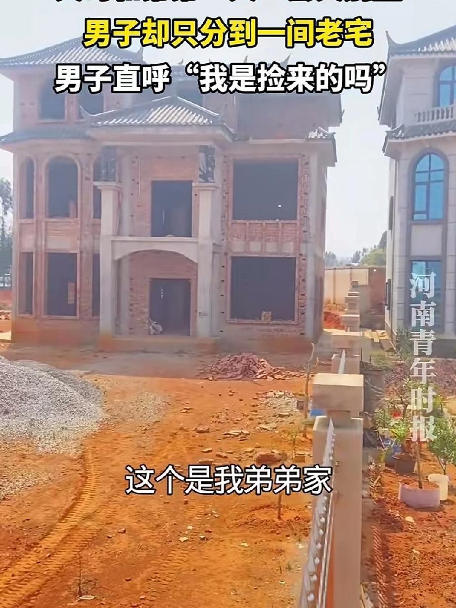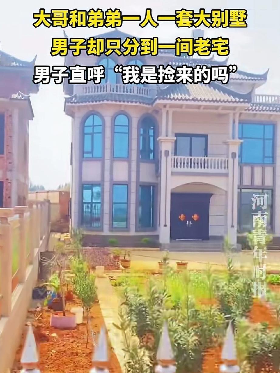 大哥和弟弟一人一套大別墅,男子却只分到了一间老宅,觉得父亲分家不公平,直呼:“难道我是捡来的吗” 哥仨分家,其中,必有一人会分到老宅,老二分到老宅心有不甘,但做为三个儿子的父母,要想达到个个满意,根本不可能太难了,除非以抓阄的方式分房子公平点,那样靠运气分到的房子,也许会毫无怨言! 现实中这样的事太多了,哥们多的家庭分家时,为难的只有父母,父母做不到公平公义,他们只想把最好的都给子女们,做为子女又有几人能体谅父母呢?
