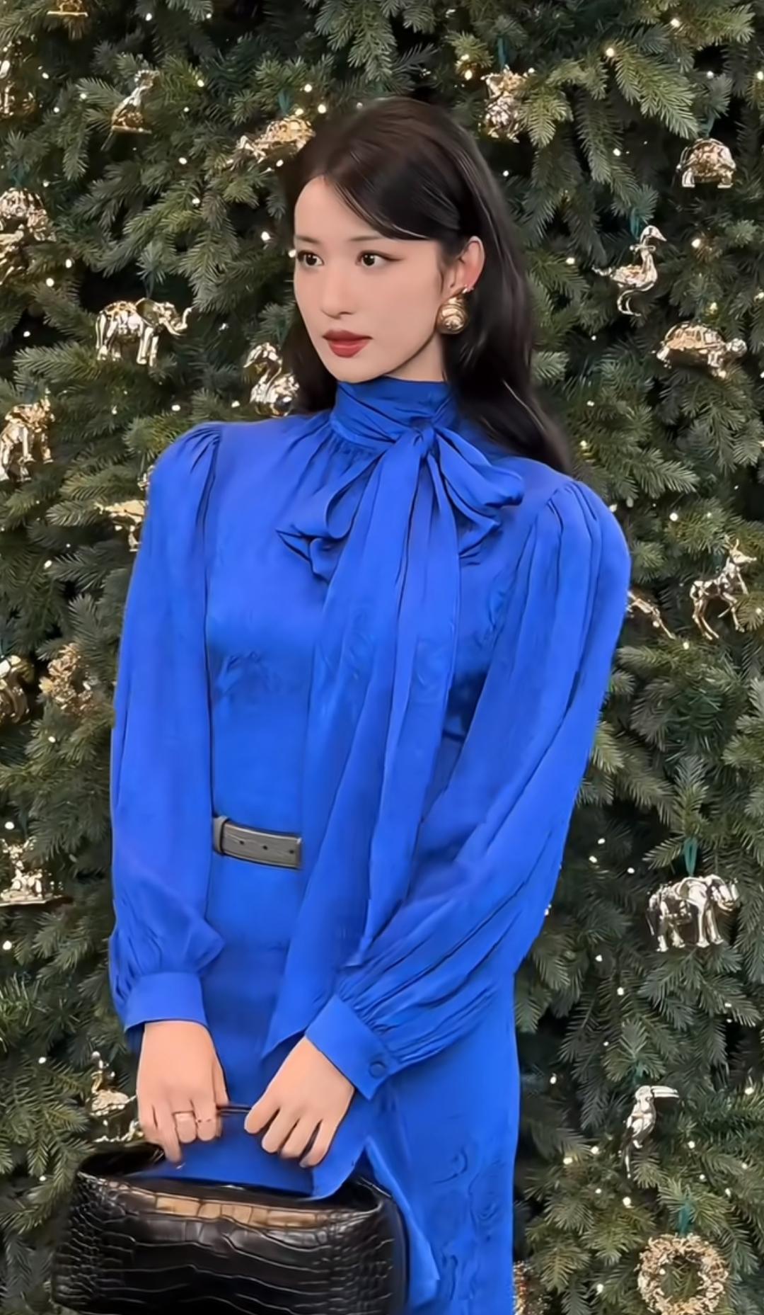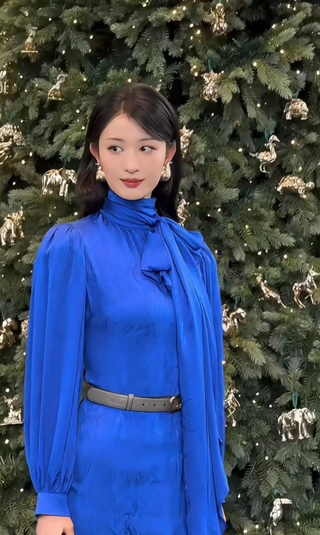 王楚然这波活动造型也太戳人了吧!一身亮蓝色连衣裙往圣诞树前一站,直接成了冬天里的“明艳暴击”——高领飘带衬得肩颈线条绝了,配个细腰带刚好掐出腰线,再加上大波浪卷发和红唇,又贵气又亮眼。 她这张脸是真没话说,骨相立体得像被精心捏过,五官精致又舒展,往那儿一站自带氛围感。不过客观讲,颜值气质都够顶,但演技确实还得再打磨打磨,希望美女之后能多接好本子,把业务能力也跟上颜值~