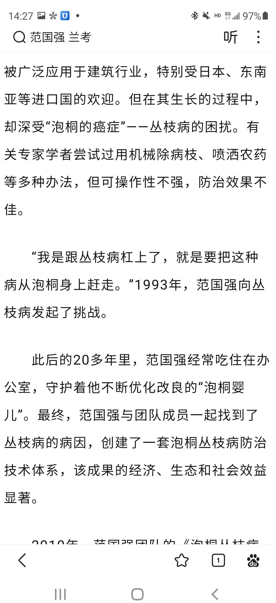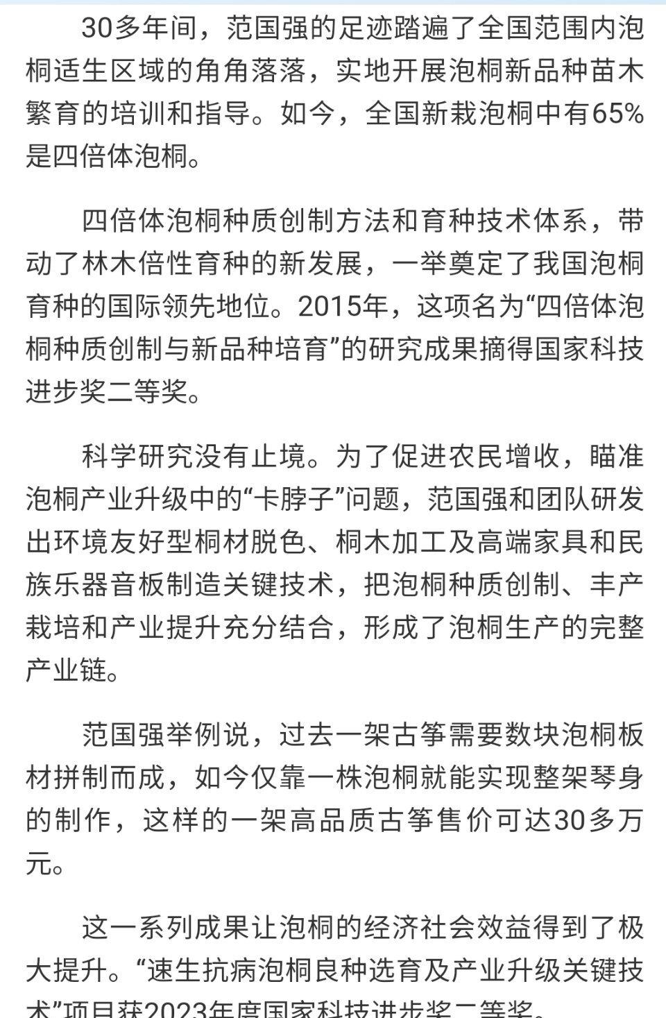 新当选的工程院院士范国强,攻克了”泡桐癌症”还培育出四倍体泡桐,助力兰考成为全国最大的民族乐器制造基地;当年在兰考种树治沙的先辈,知道了应该会很欣慰吧。
