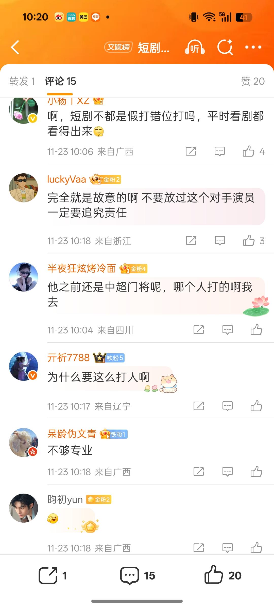 据新浪娱乐报道:22日,短剧演员王年将成_ 在拍戏时疑似被对手演员真打受伤,视频中可听见打到脸时很大一声,随即王年将成捂脸险些倒下,迟迟没有缓过来。 现在有网友猜测这是不是公报私仇?毕竟拍戏都是借位的,你说有可能失手,这个理解。 但看对方受伤的情况,这明显是带点私人恩怨, 现在这情况估计接下来是拍不了戏了,就看对方能否给予补偿,不过我估计最多书面道歉了,赔偿可能没有。