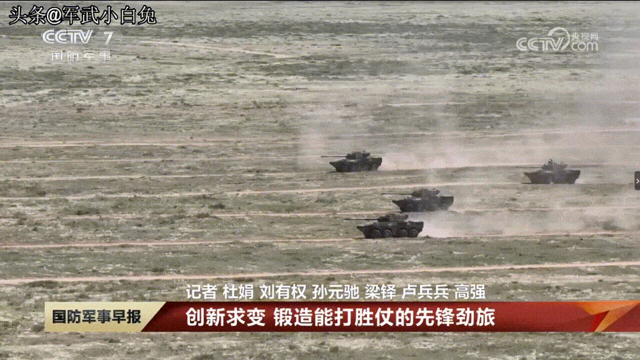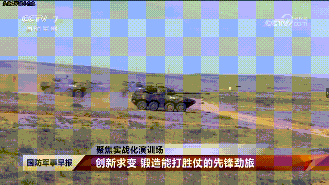 少见的zlt-11式105毫米轮式装甲突击车行进间射击画面。