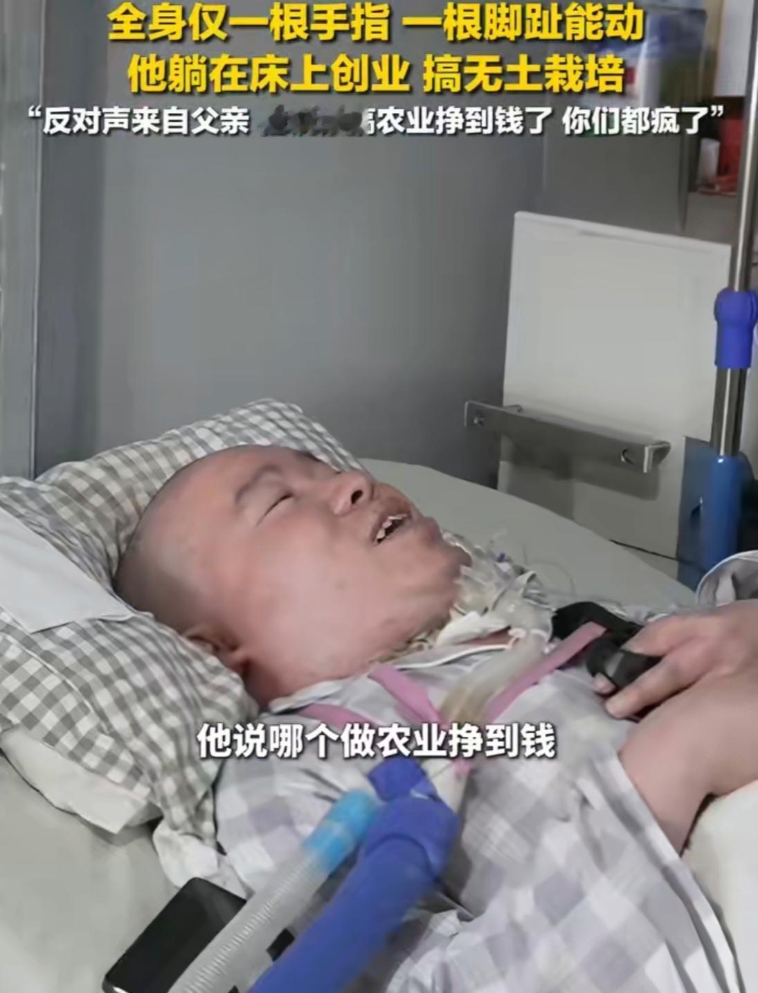 仅1指1趾能动,他躺床建起智慧农场 11月23日报道,重庆渝北区渝辰农场创始人黎夏,用顽强意志书写生命奇迹。幼年确诊进行性肌营养不良症的他,小学四年级便因瘫痪辍学,全身肌肉萎缩后仅一根手指、一根脚趾能动。 即便被困病床,黎夏从未放弃,自学物理、编程与剪辑技能,更携手母亲开启创业之路。面对父亲“谁搞农业挣到钱”的反对与质疑,他坚持搭建小型智慧农场,通过无土栽培的基质培与水培技术,成功培育多种作物。 从瘫痪少年到农场创始人,黎夏以残缺的身体对抗命运磨难,用知识与毅力打破困境,这份不向命运低头的韧劲,诠释了奋斗的力量。
