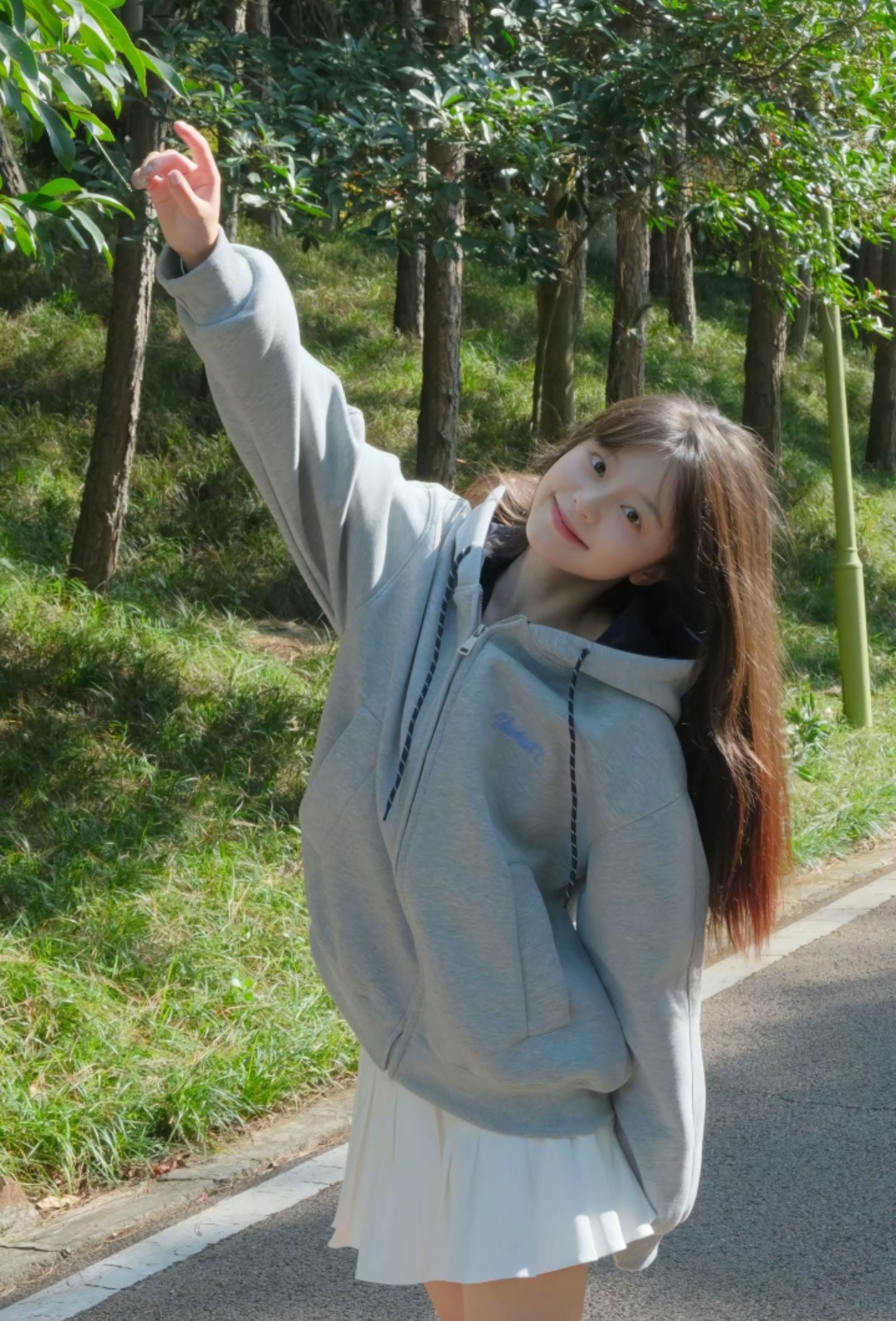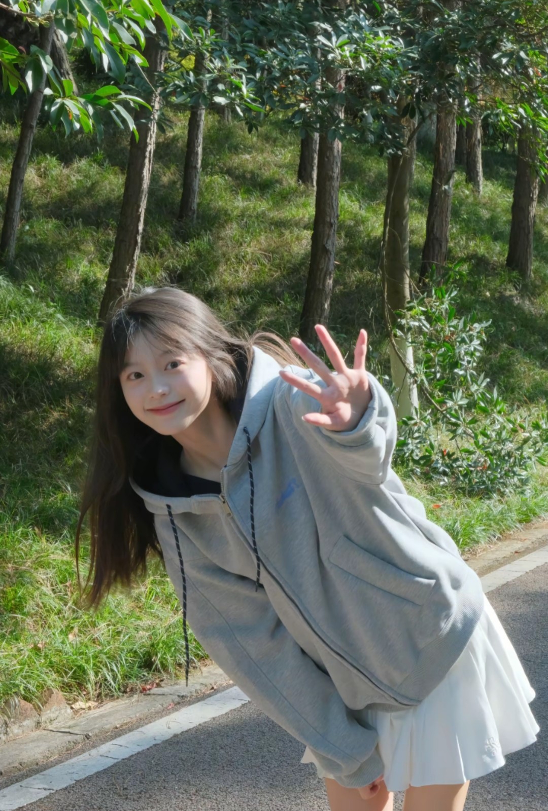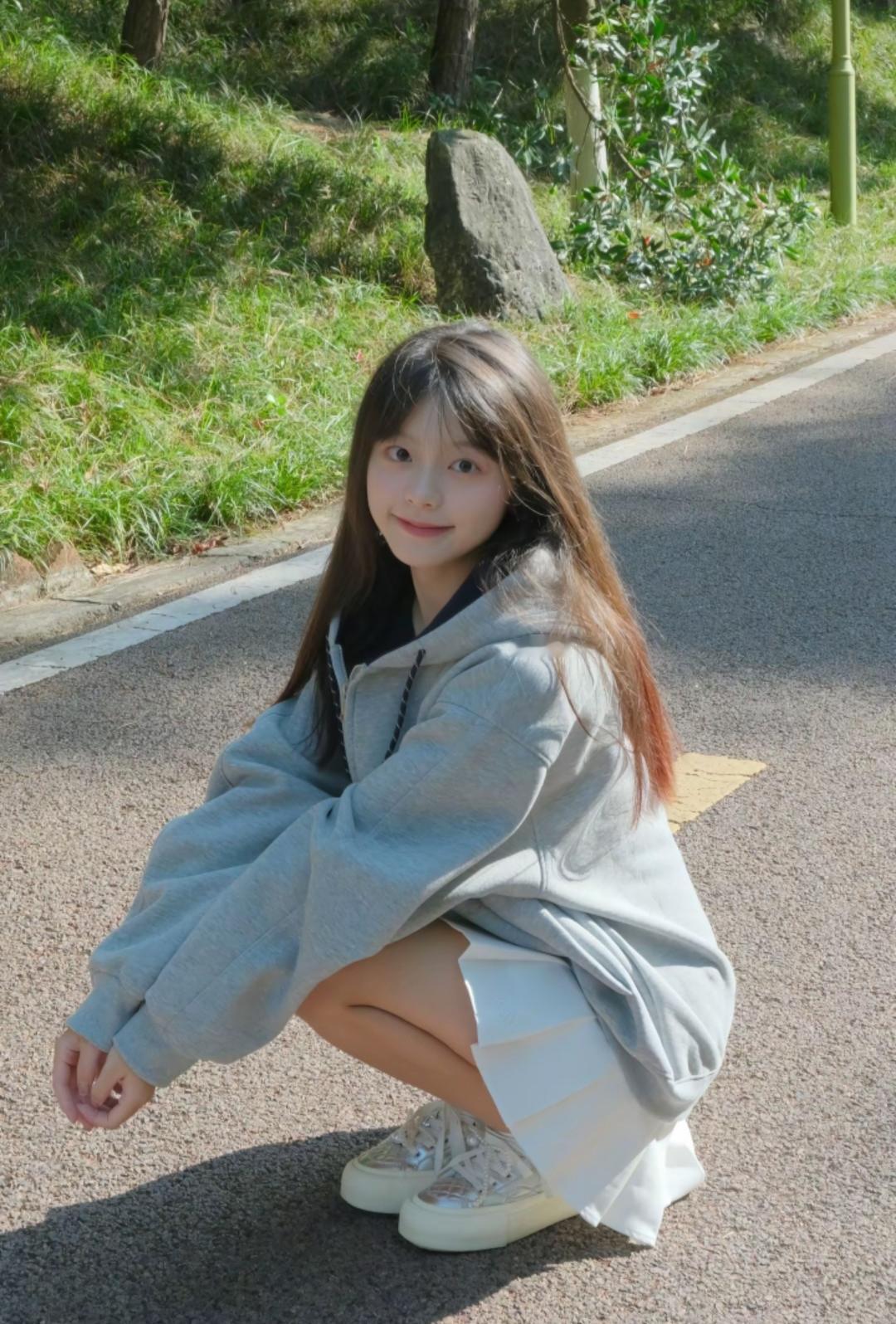 元气少女在花草丛林的马路上蹲着美图,这画面简直不要太美好!就像安安崽的清纯甜美写真,青春活力都快溢出屏幕了。