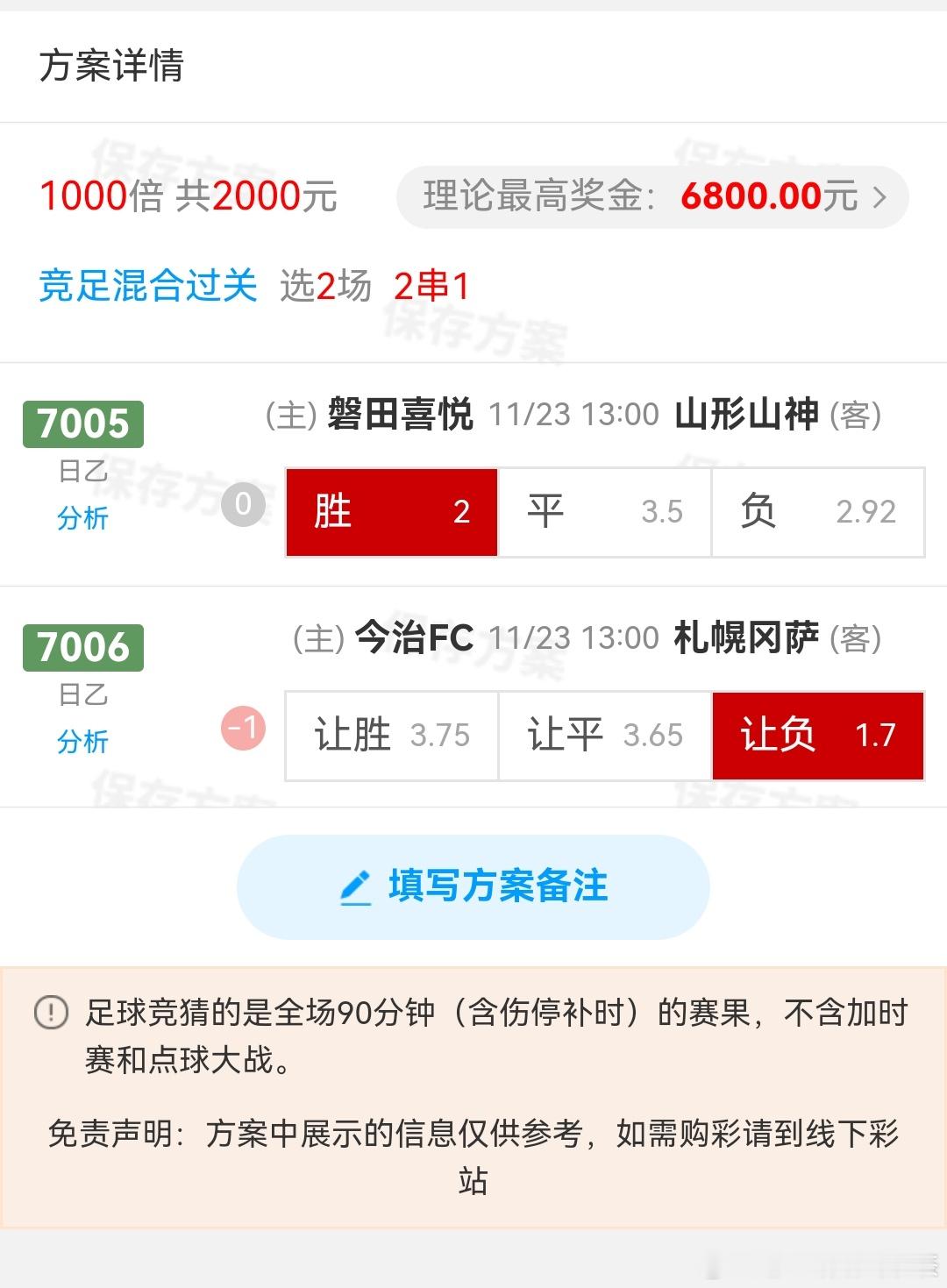 昨天早场顺利拿下,可惜晚场意甲的亚特兰大连个底线都守不住,直接被那不勒斯击穿!今日早场日乙组合!