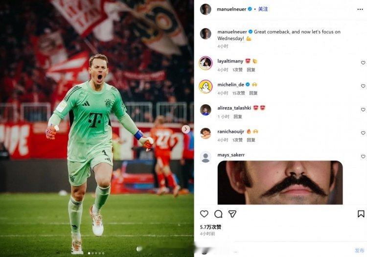 其实周中欧冠输赢对两队都没大影响,比划比划得了 诺伊尔更新社媒展望欧冠:“伟大的逆转!现在让我们专注于周三的比赛!”