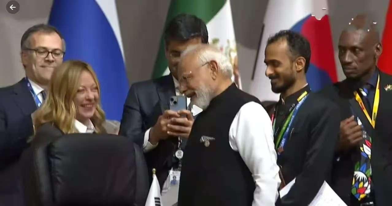 梅洛尼与莫迪相遇,火花四溅。 南非G20峰会,印度总理莫迪相遇到了意大利总理梅洛尼,两人想谈甚欢,虽然两个人私下没有什么关系,但在这样的场合见面,相谈甚欢,话题应该是很不错。 从画面看,有工作人员拿手机录像和拍照,说明两人谈的并不是工作,应该是印度或者意大利的习俗,比如莫迪说,印度吃饭用手抓,不用刀叉,梅洛尼就哈哈大笑了。 不过梅洛尼是从底层一路摸爬滚打才当了总理,性格也非常开朗,自来熟,莫迪对美女交流,肯定不会不理。 看来,G20峰会没有美国参加,其他国家之间的氛围都轻松了很多,谈笑风生,有可能达成共识超过预期。