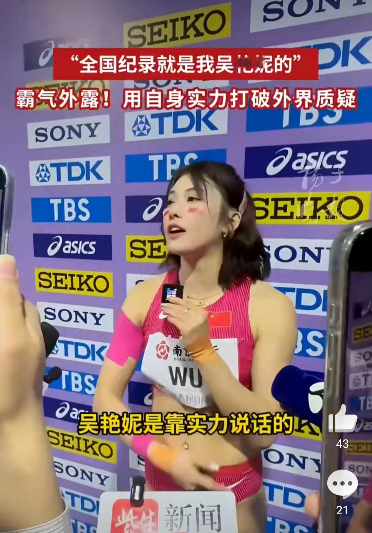 她吹任她吹,上届林雨薇!她狂任她狂,这届刘景杨!你行任你行,下届夏思凝!网友总结的太到位了!不是说吴艳妮不好,只是专业之外牵绊的因素太多!作为专业运动员,应该以训练场为主场,不要整天出镜,代言,参与广告拍摄,目前赚钱应该放在最后,训练比赛才是第一位!刘景杨没有夺冠之前,恐怕很多人都不知道她吧,镜头也很少给到她!甚至连输入法都不认识她,我输了好几次硬是没出来,只能一个字一个字的输入!