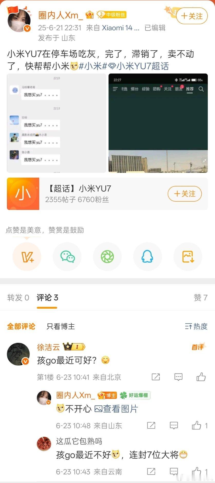 恭喜这位尊贵的车主提车,雷总亲自感谢,排面拉满!雷军发文感谢尊敬的小米YU7