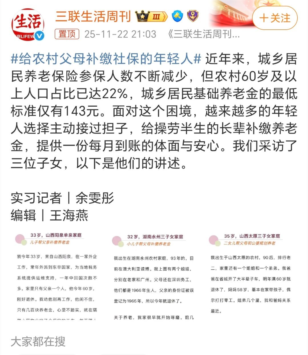 我们每年都给家人交。农村老人们都操劳了一辈子,真的很辛苦!